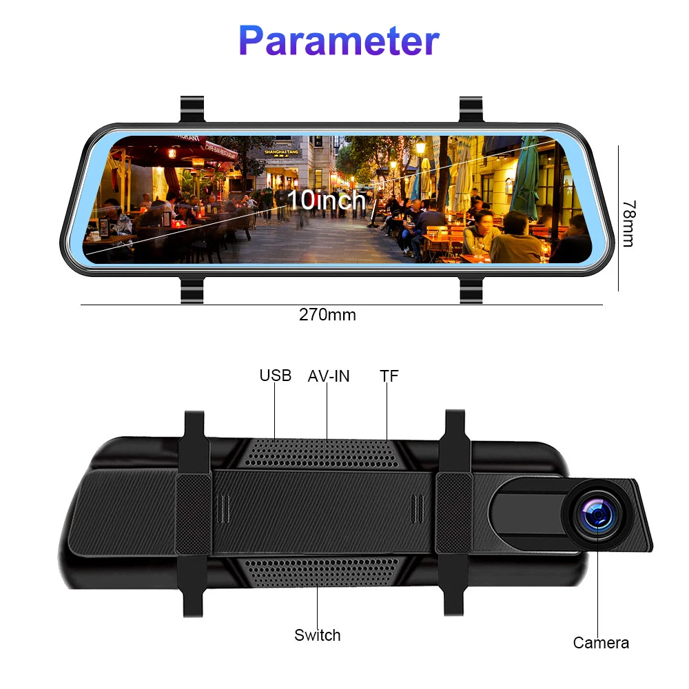 Видеорегистратор TAVIN H20, 10 дюймов, видеорегистратор с двумя объективами, сенсорный экран, мультимедийная фронтальная и задняя камера 24H, парковочный монитор