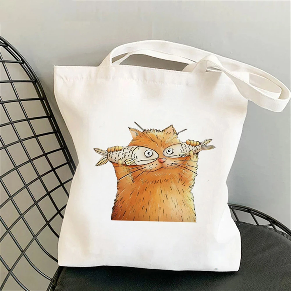 Женские холщовые сумки с рыбками и животными, вместительная сумка-т...