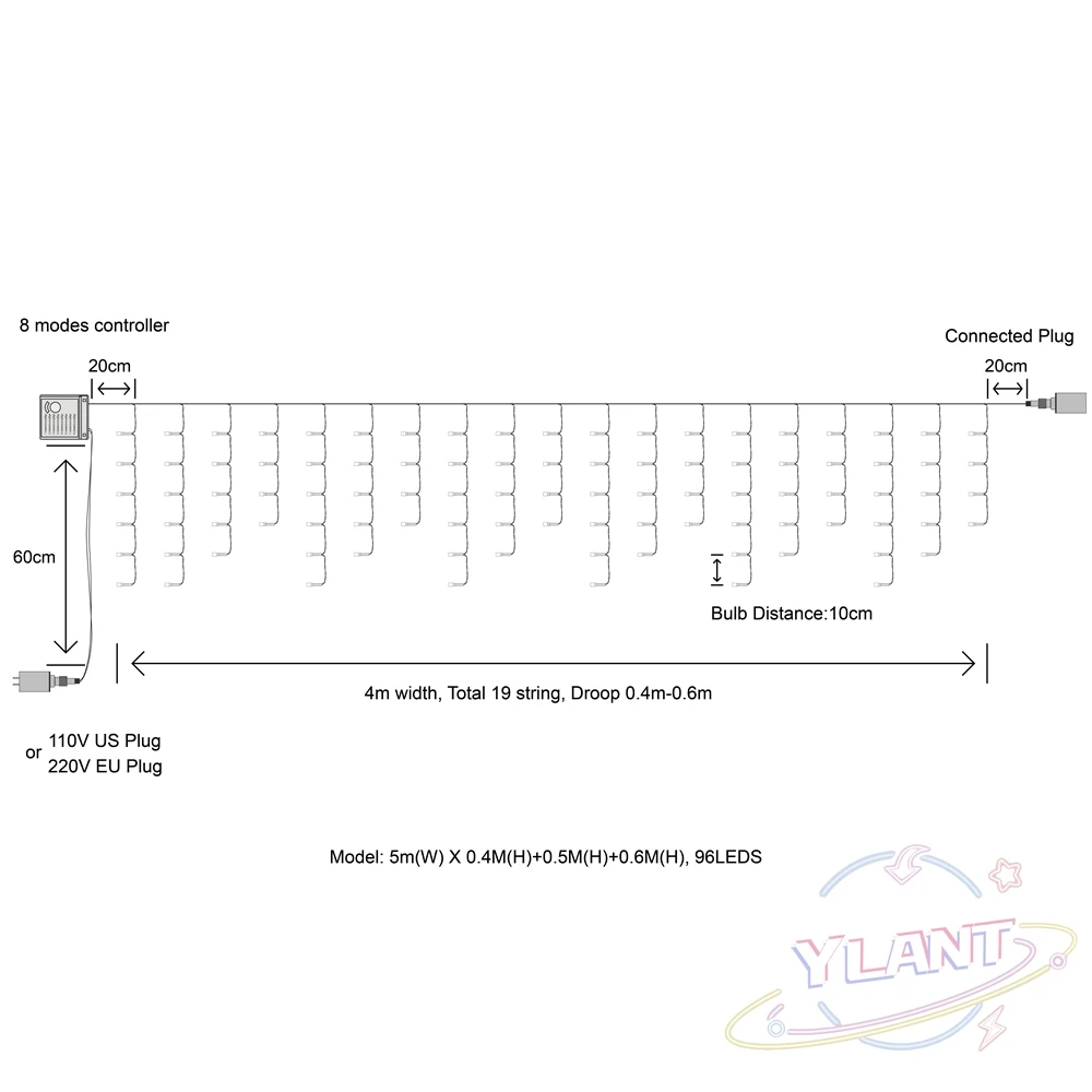 Рождественская гирлянда YLANT 5 м светодиодный светодиодная гирлянда-занавес в виде сосулек, свисающая гирлянда 0,4-0,6 М переменного тока 220 В для сада, улицы, уличное декоративное празднисветильник