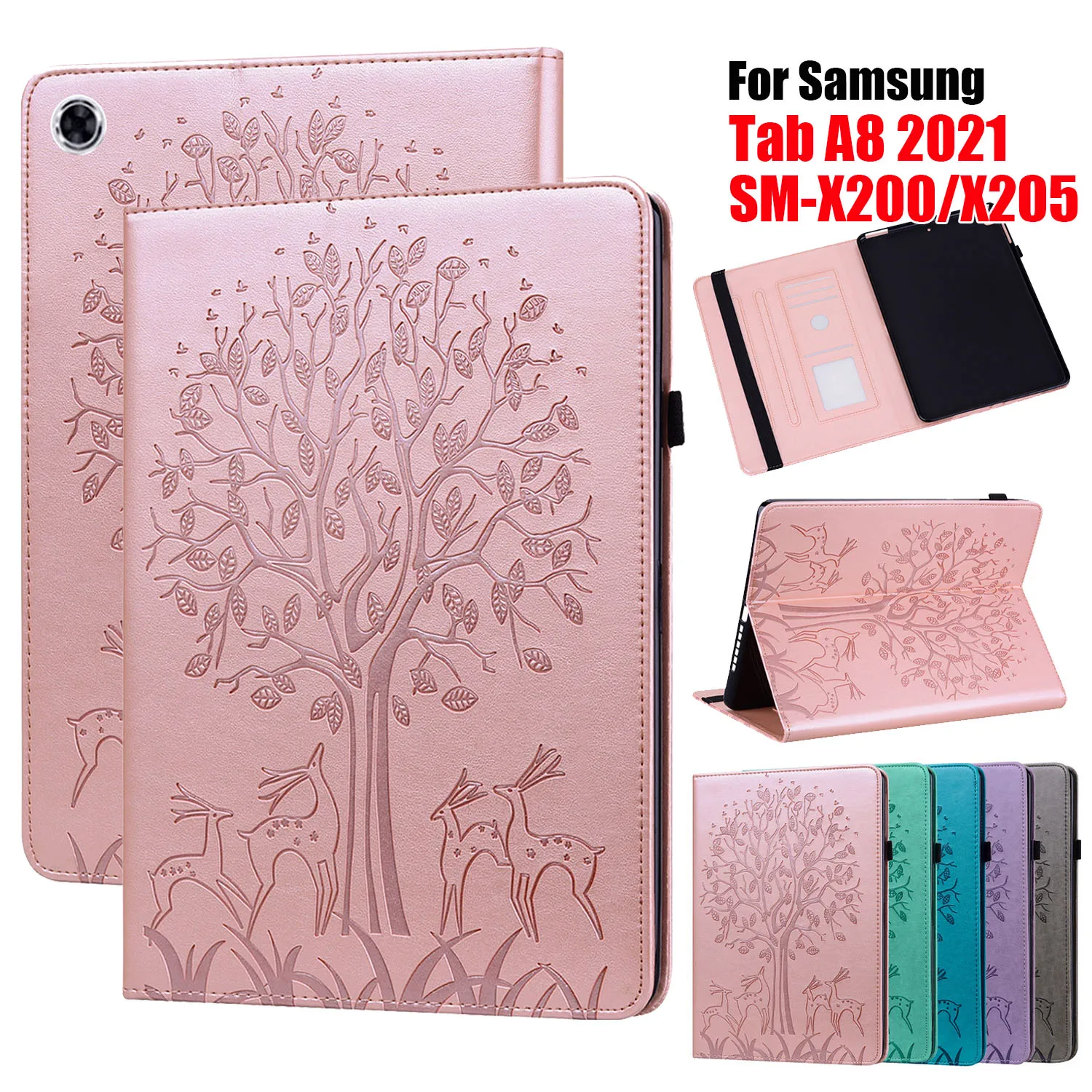 Чехол для планшета Samsung Galaxy Tab A8 2021, Женский флип-чехол 10,5, кожаный защитный мягкий чехол из ТПУ с оленем и деревом
