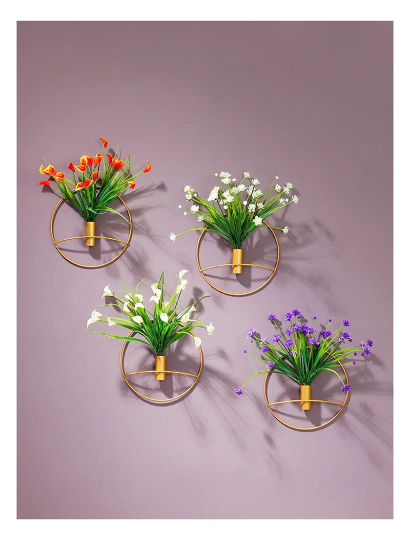 Настенная ваза в нордическом минималистичном стиле, искусственная настенная ваза золотого цвета для украшения стен, искусственный цветок, настенный горшок