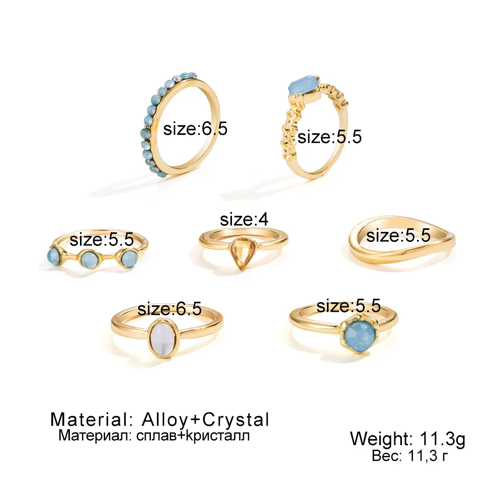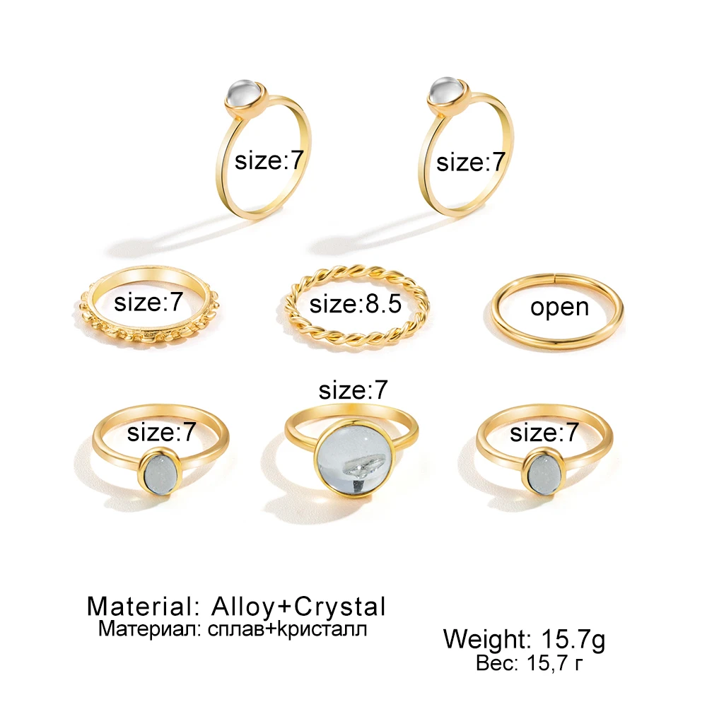 IFMIA 2021 Новинка Корея 8 шт.компл. винтажный красочный камень металлическая цепь модный геометрический набор популярных колец для женщин и девочек ювелирные изделия