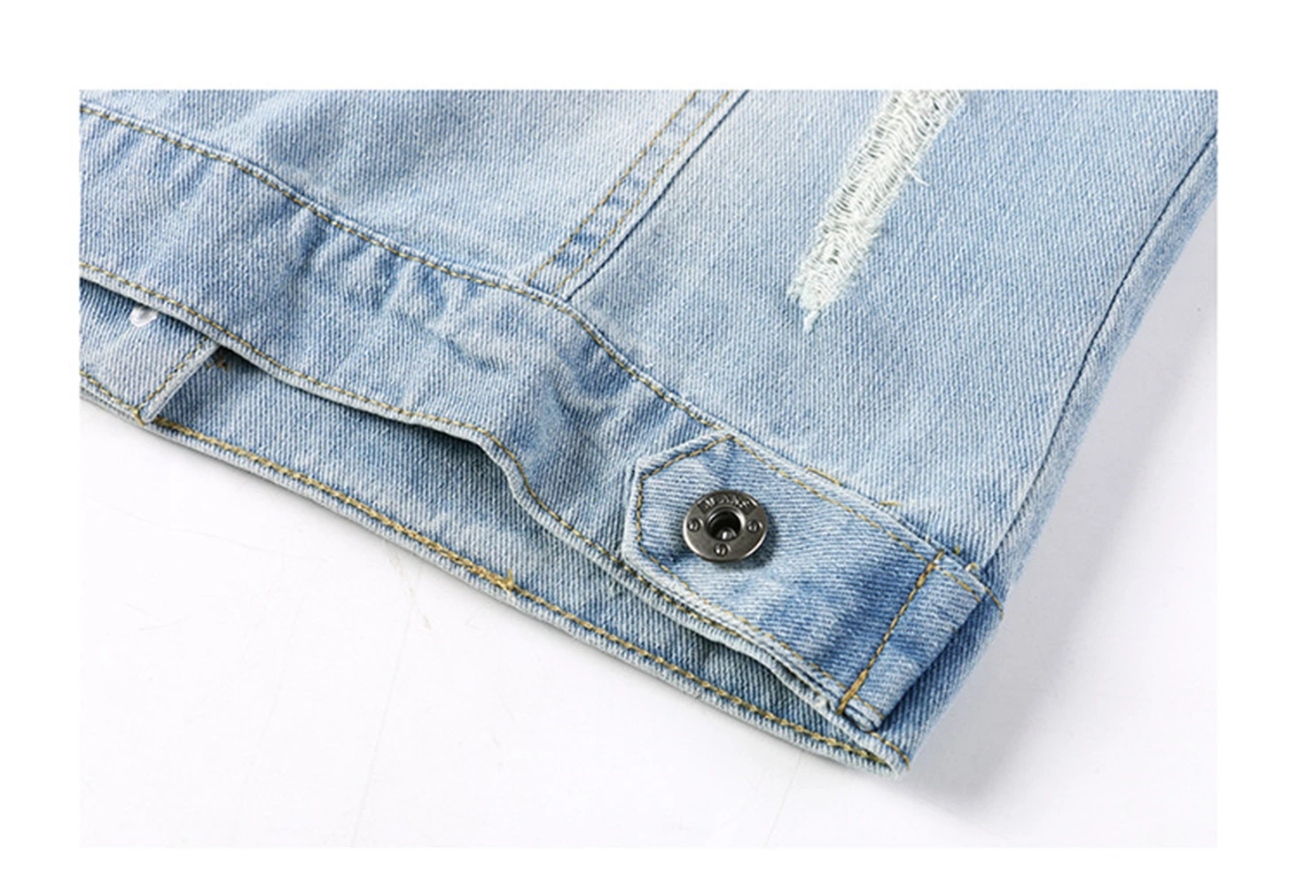 Женская рваная джинсовая куртка, джинсовая куртка большого размера ...