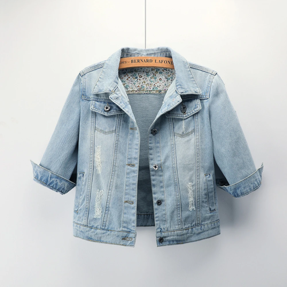 Куртка женская джинсовая с рукавом 34, куртка из денима 2021, Женск...