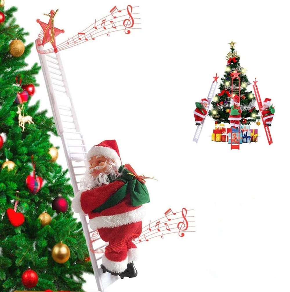 Рождественский Электрический Санта-Клаус, альпинистская лестница, плюшевая кукла, креативная музыка, Рождественский Декор, детская игрушка, подарок на Рождество, день рождения, подарки