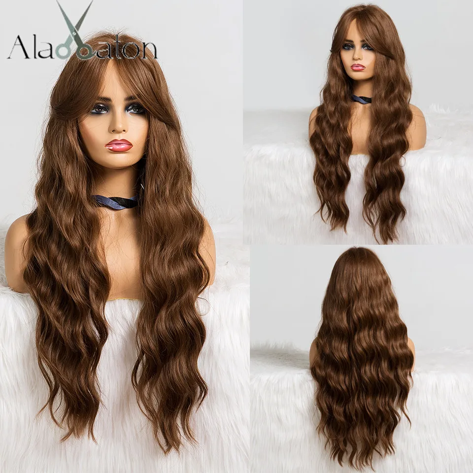 Парики с челкой для женщин, Длинные Синтетические волосы с волнами,...