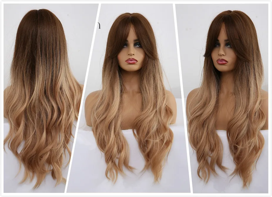 ALAN EATON Ombre волнистые парики черный коричневый блонд средняя часть косплей синтетические парики с челкой для женщин длинные волосы парики поддельные волосы