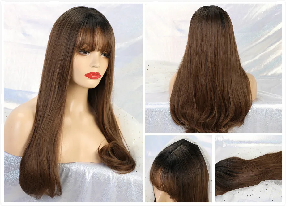 Длинные прямые синтетические парики для женщин, парики из натуральн...