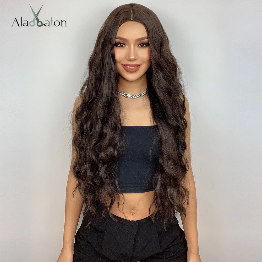 Длинные пушистые темно-коричневые волнистые термостойкие парики LOU...