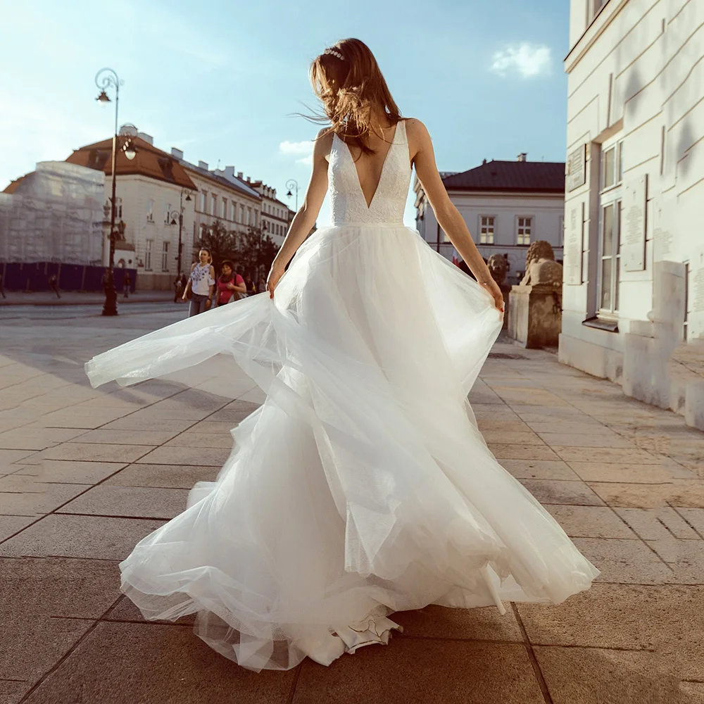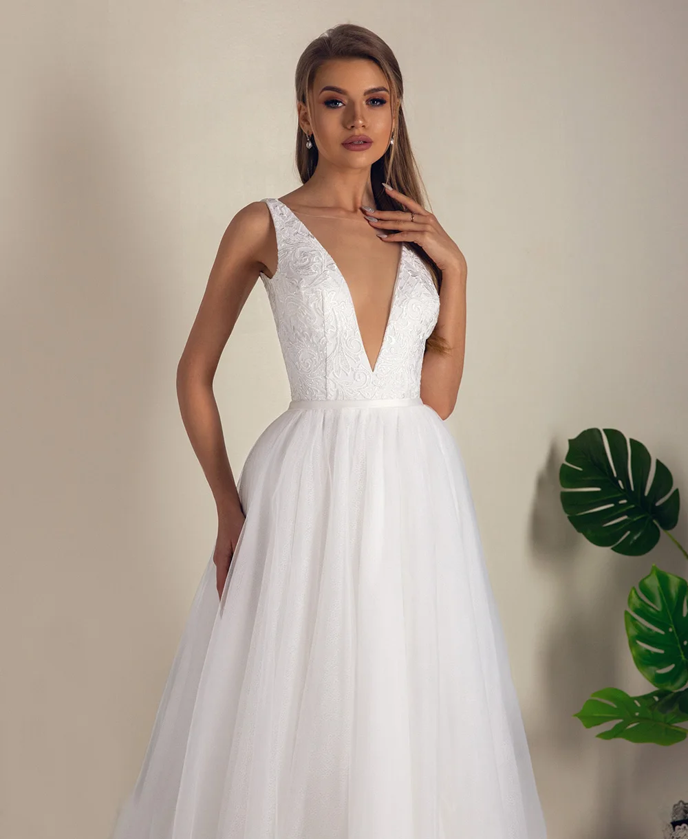 Платье LORIE свадебное с V-образным вырезом, Пляжное фатиновое с от...