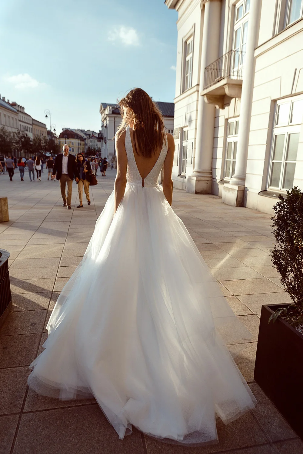 Платье свадебное с V-образным вырезом, открытой спиной и блестками