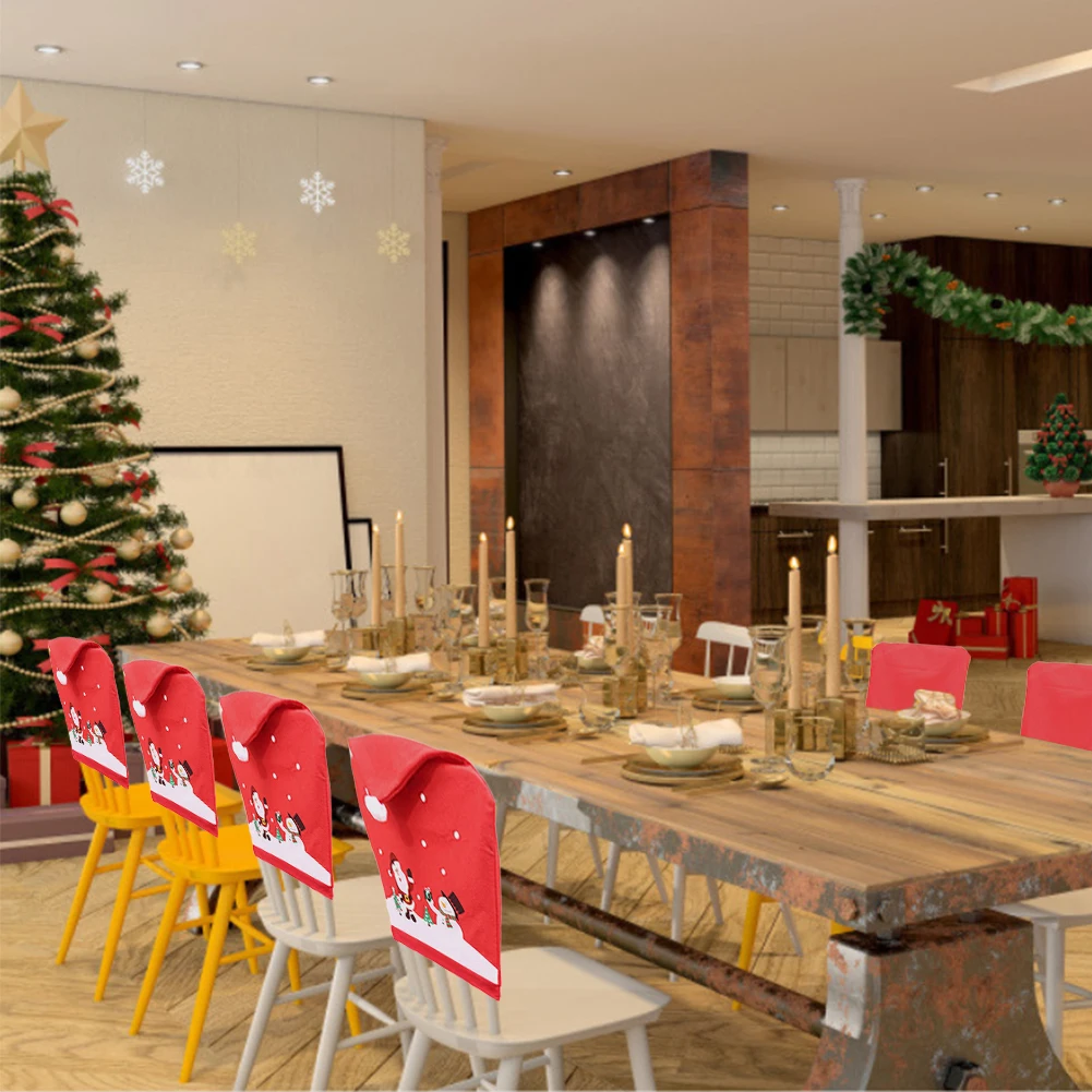 Рождественский чехол на стул, шляпа для обеденного стола, задняя крышка стула, тканевый реквизит, креативный милый защитный чехол для отеля