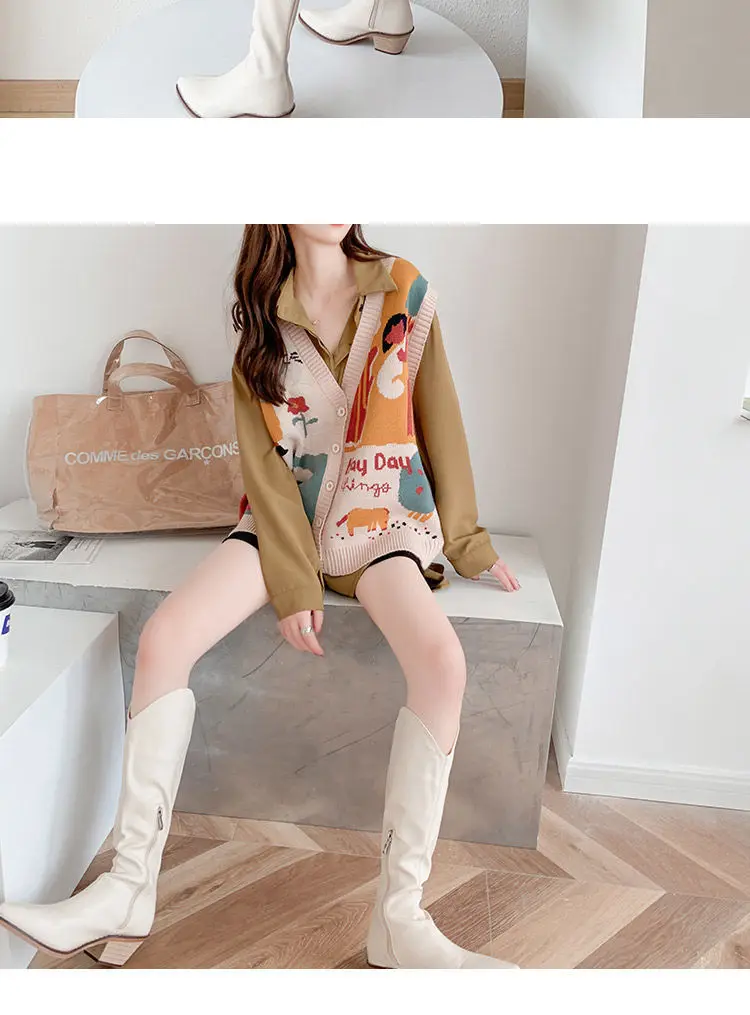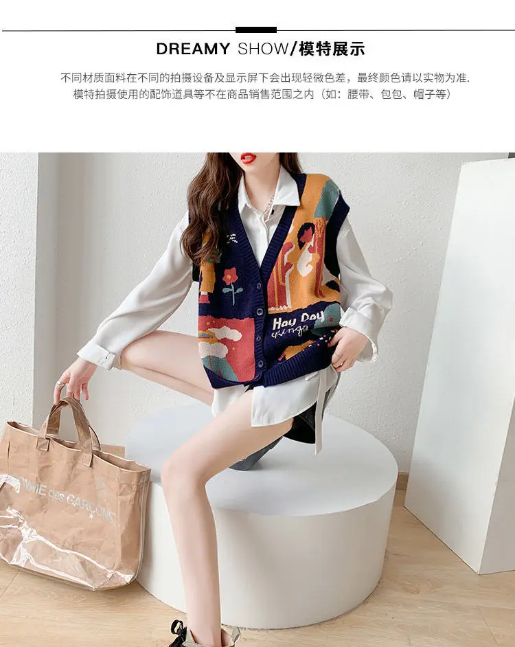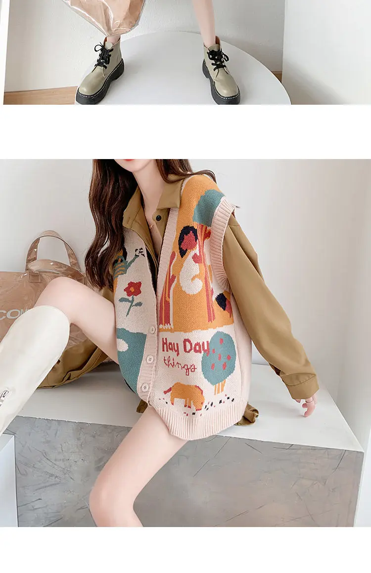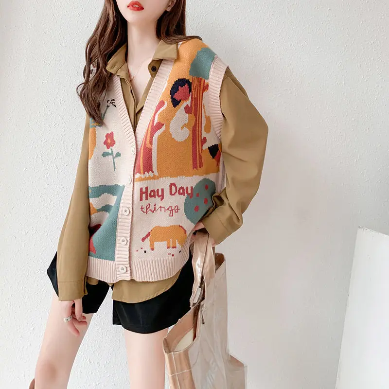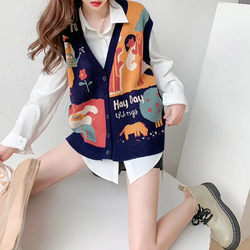 Женский свитер в стиле Харадзюку, винтажный Свободный вязаный кардиган в стиле граффити в стиле ретро, новинка 2022 года, зимний Корейский вязаный женский кардиган