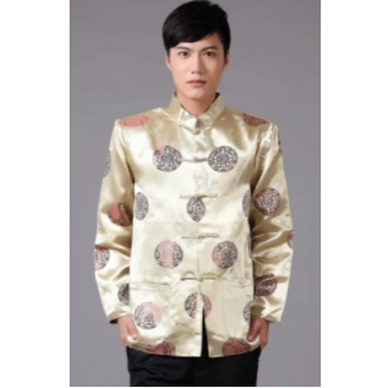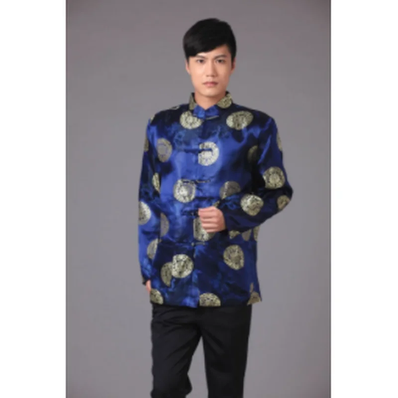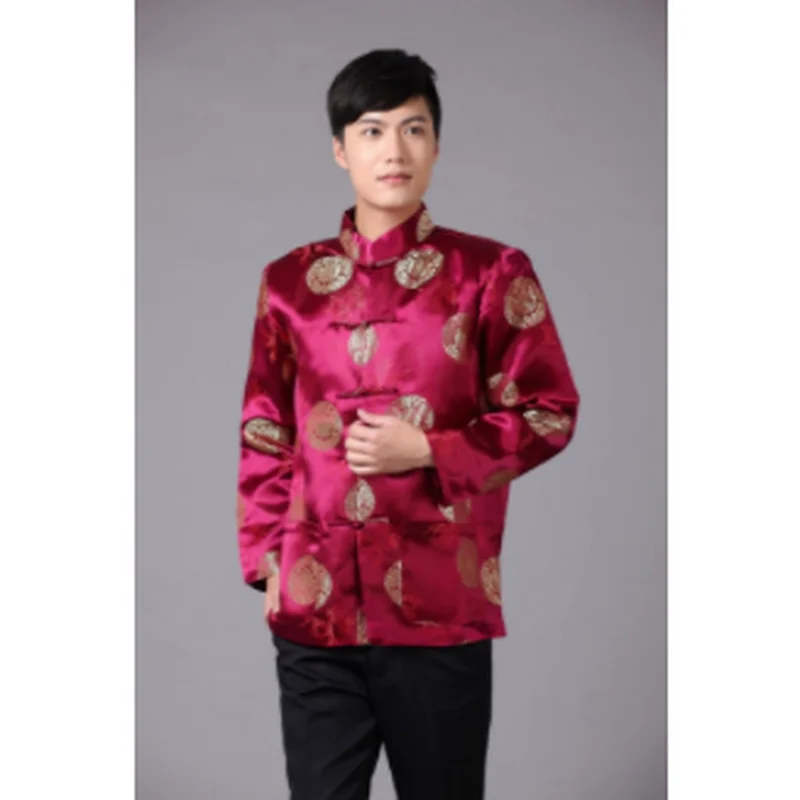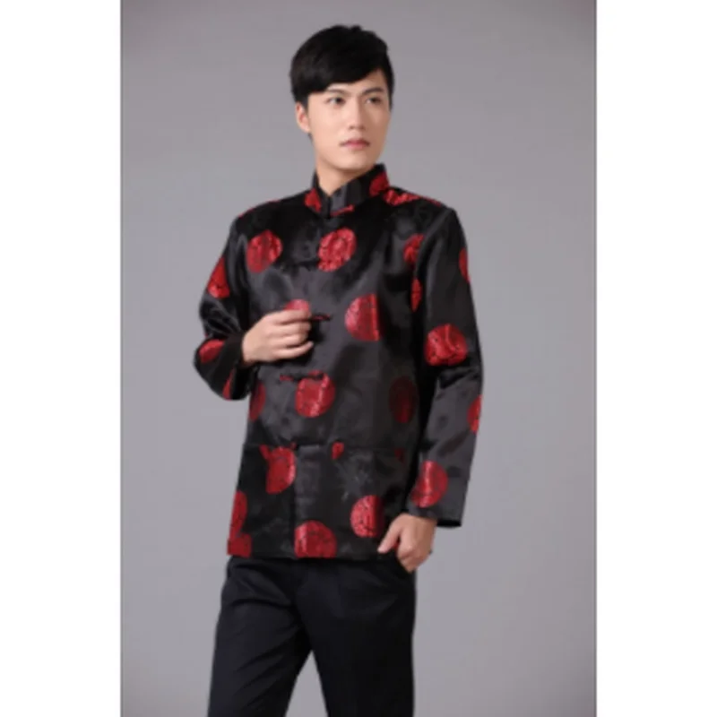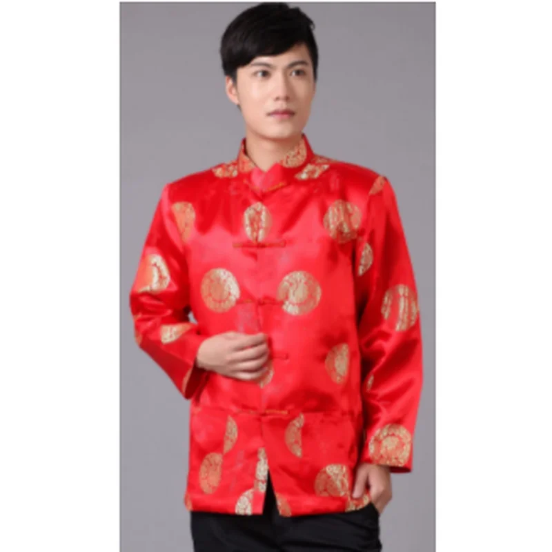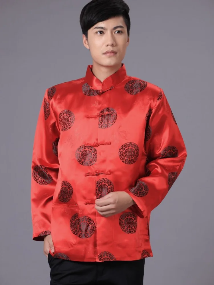 Парчовая традиционная китайская одежда для мужчин, костюм Тан, топы, Молодежная рубашка с длинным рукавом, новогодний чонсам, куртка, Мужская Ретро одежда