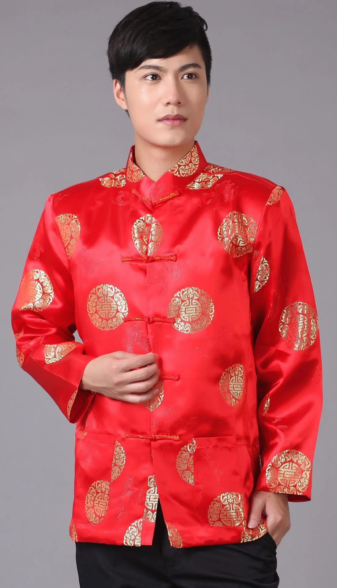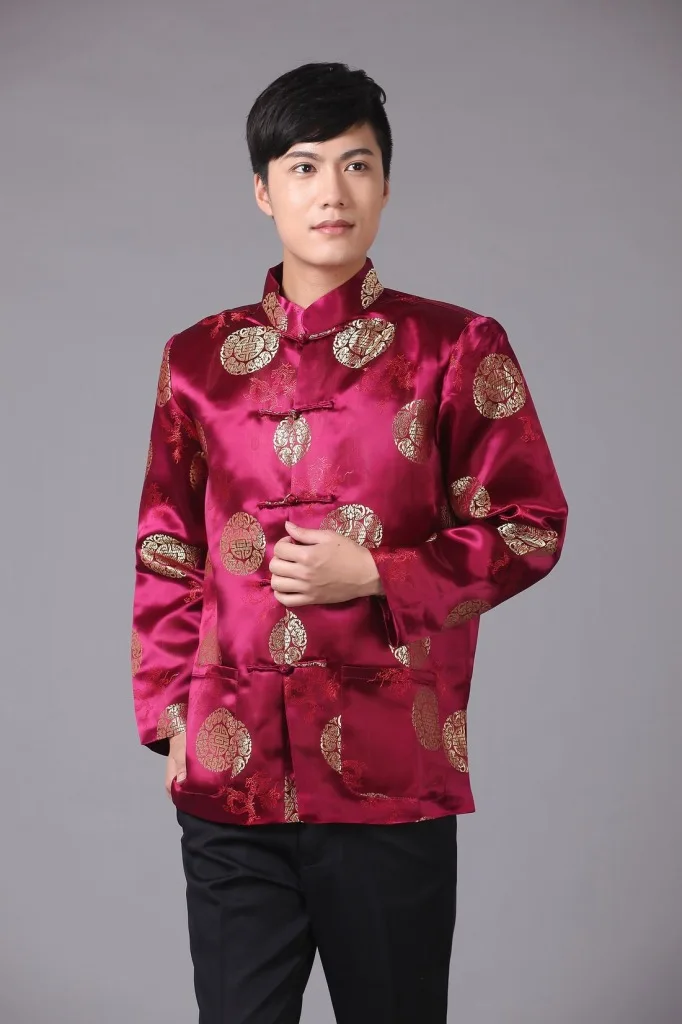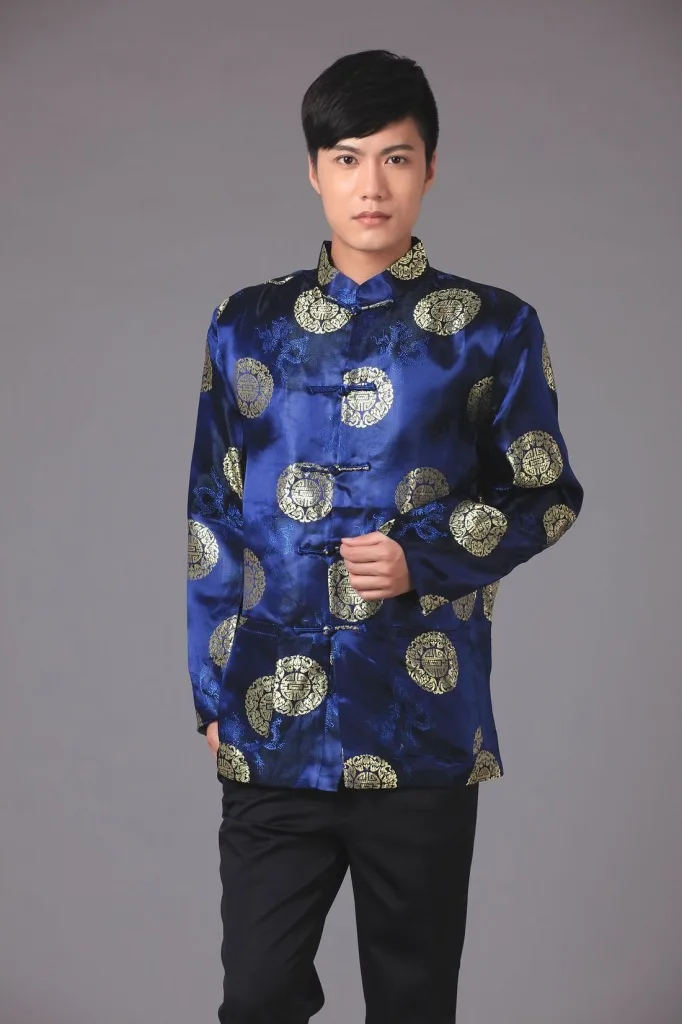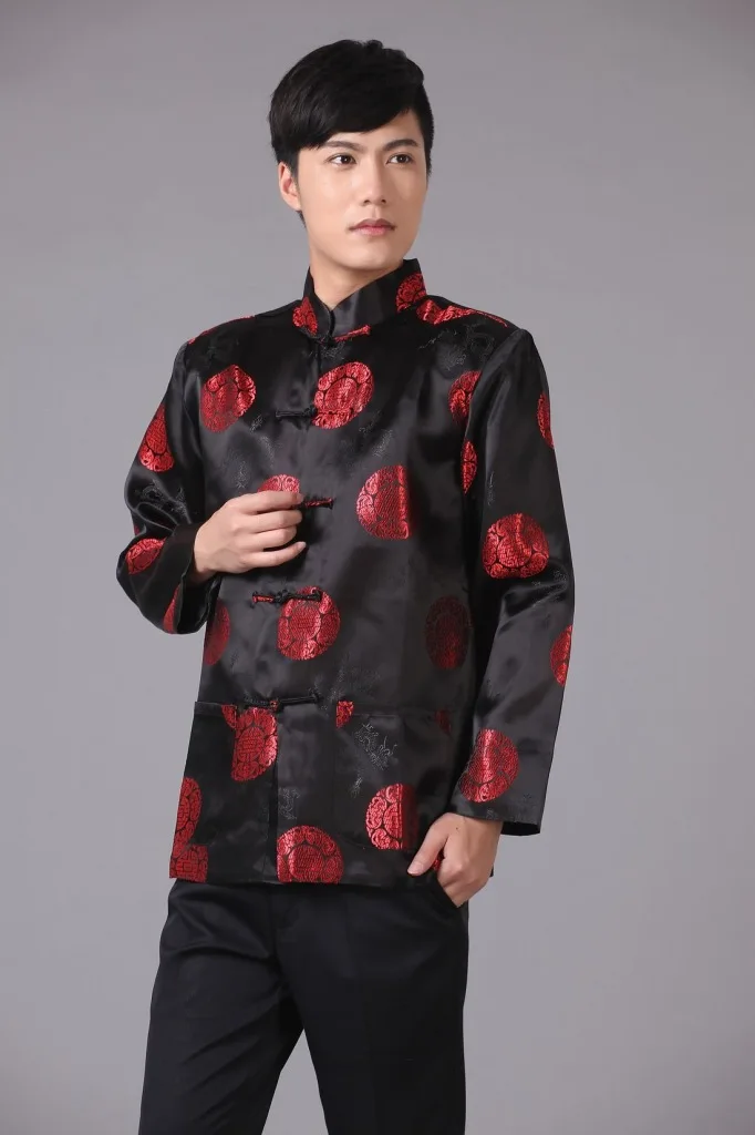 Парчовая традиционная китайская одежда для мужчин, костюм Тан, топы, Молодежная рубашка с длинным рукавом, новогодний чонсам, куртка, Мужская Ретро одежда