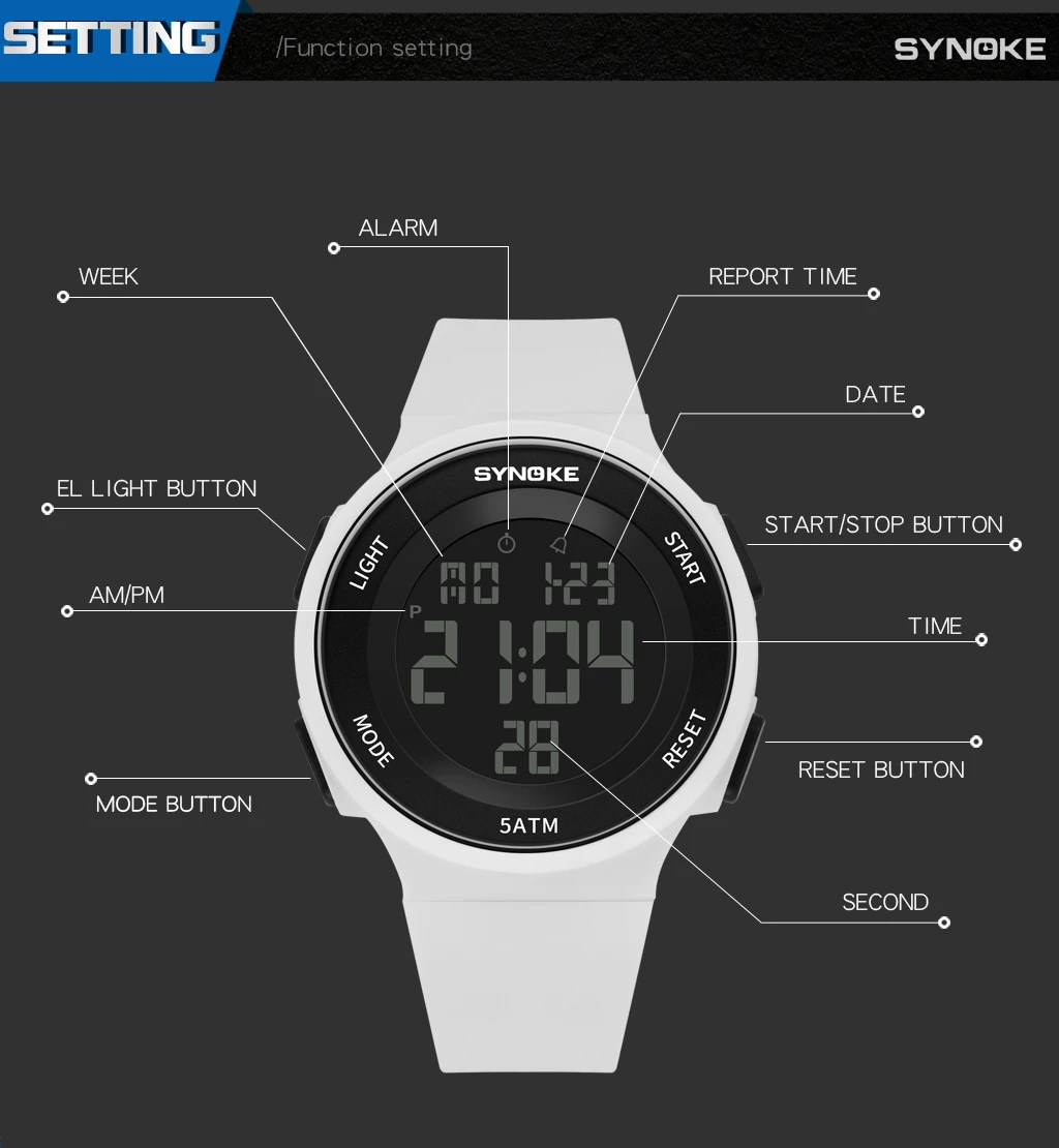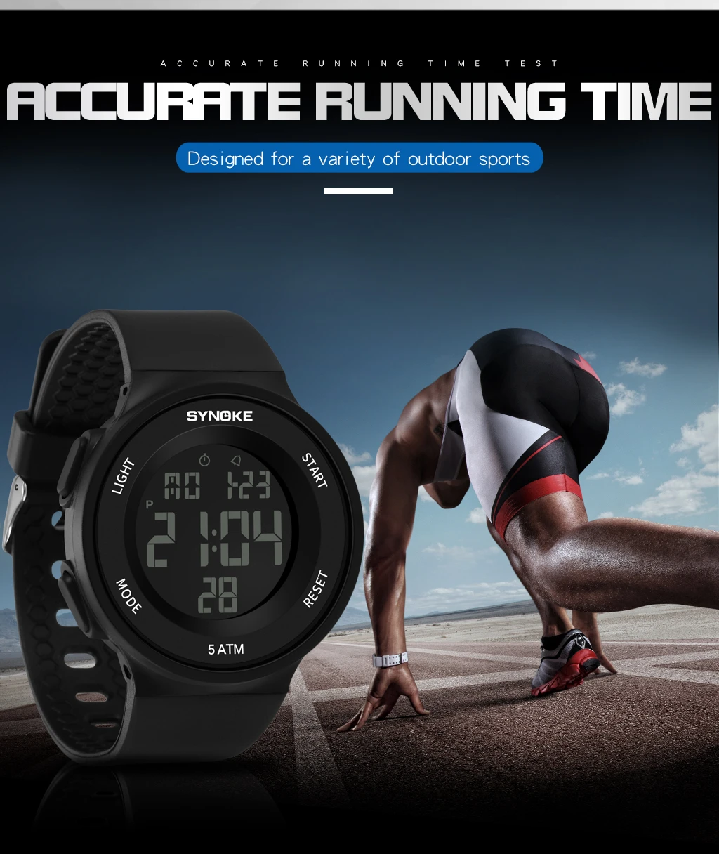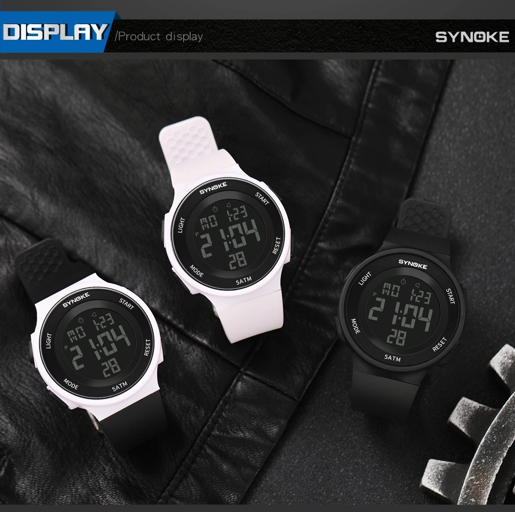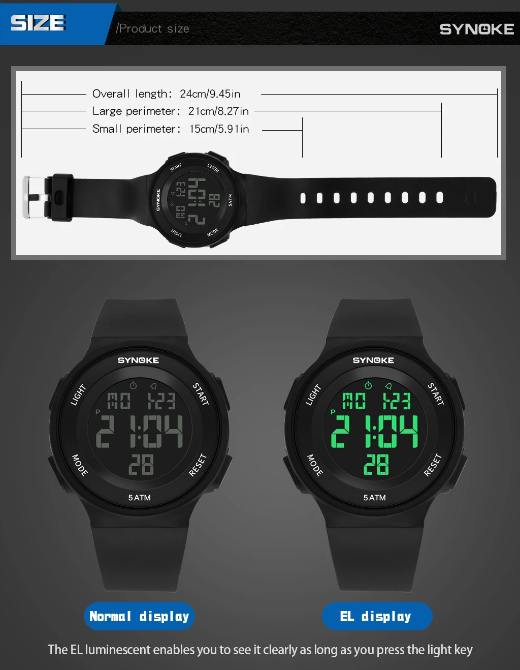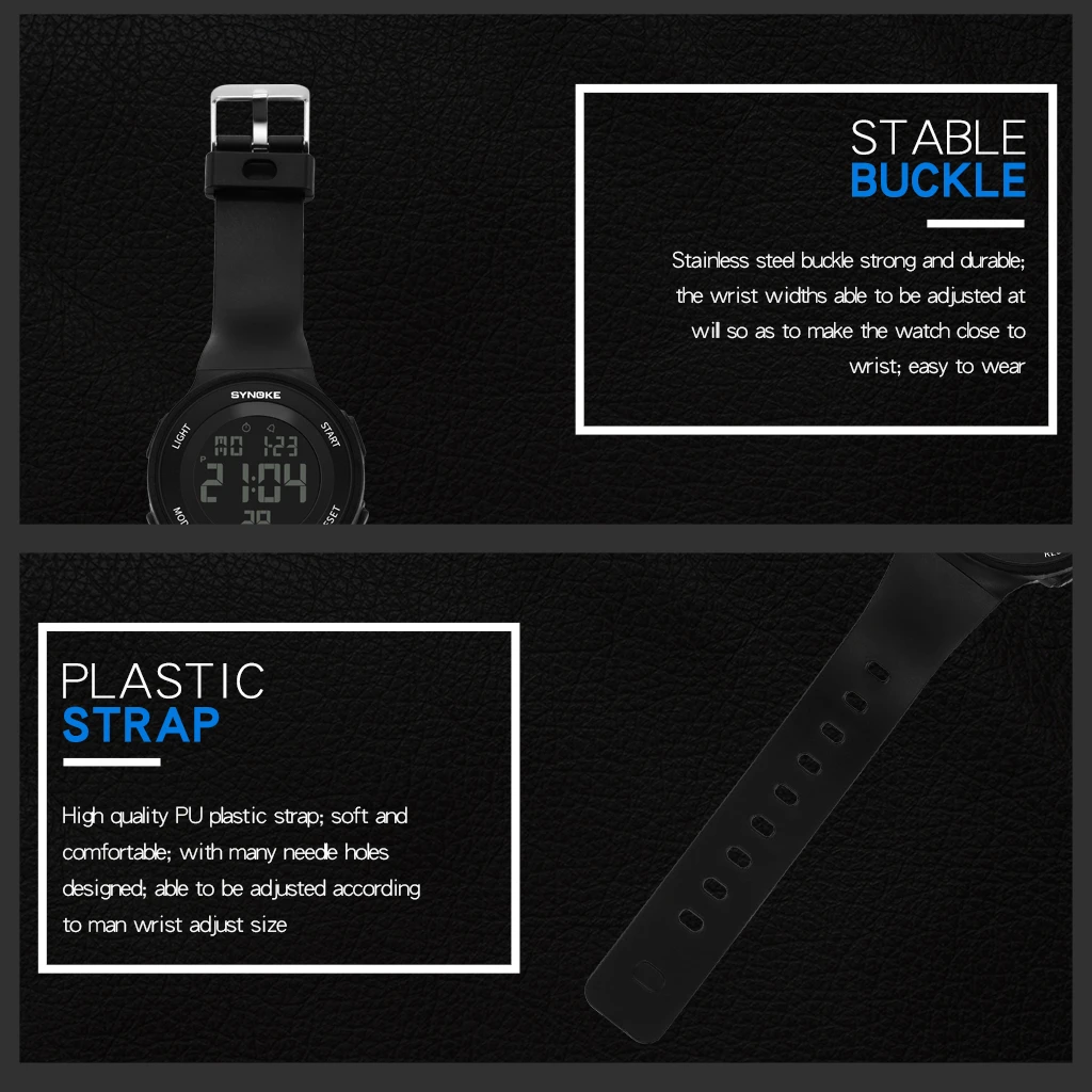 SYNOKE мужские спортивные часы женские мужские электронные часы со съемным ремешком цифровые наручные часы 5 бар водонепроницаемые часы Reloj Deportivo montre