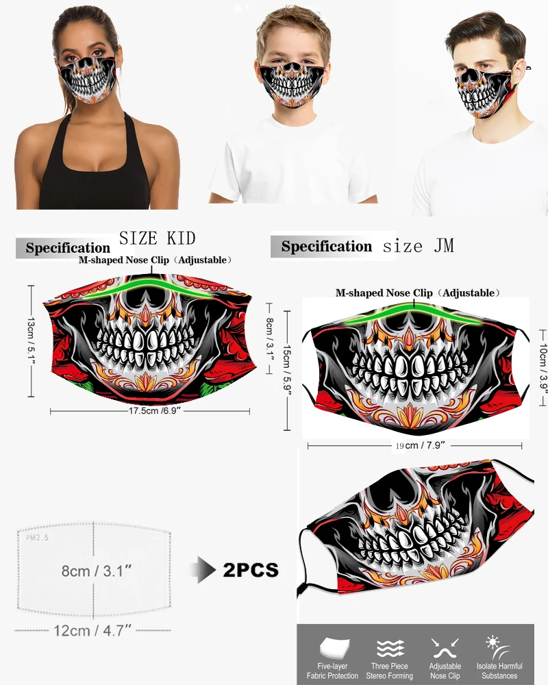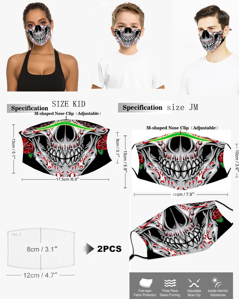 Маски с мультяшным черепом для взрослых, многоразовые моющиеся тканевые маски с фильтрами для ролевых игр