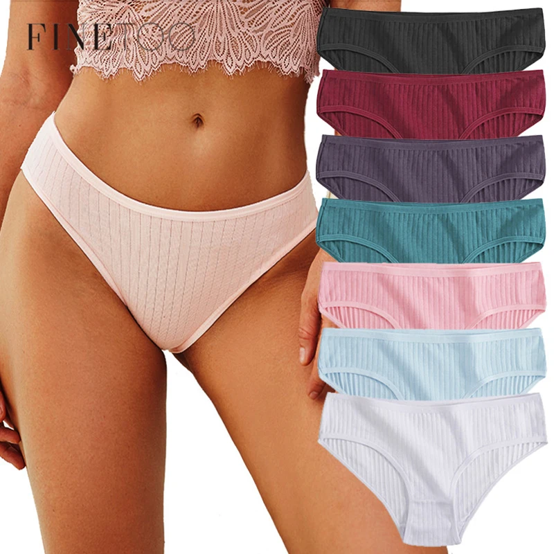 FINETOO, хлопковые трусики, женские однотонные трусы, мягкие трусы M-XL, нижнее белье в полоску для девочек, удобные трусики, женское нижнее белье