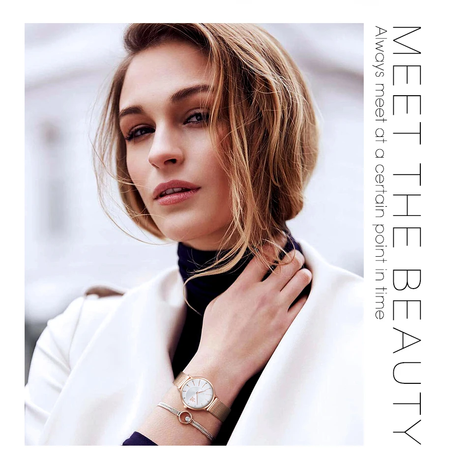 Часы Rosegold женские классические, модные наручные, с регулируемым сетчатым браслетом из нержавеющей стали, с японским кварцевым механизмом
