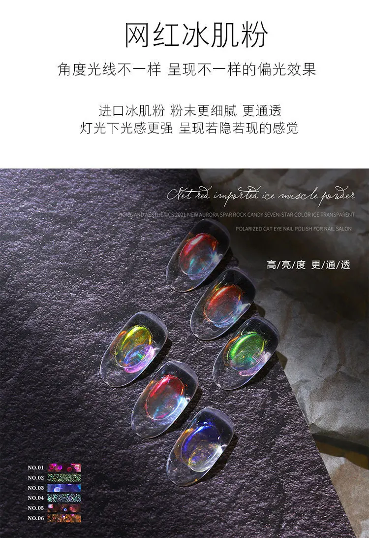 Кубик льда Aurora, 6 цветов, порошки для ногтей пыли, хамелеон, про...