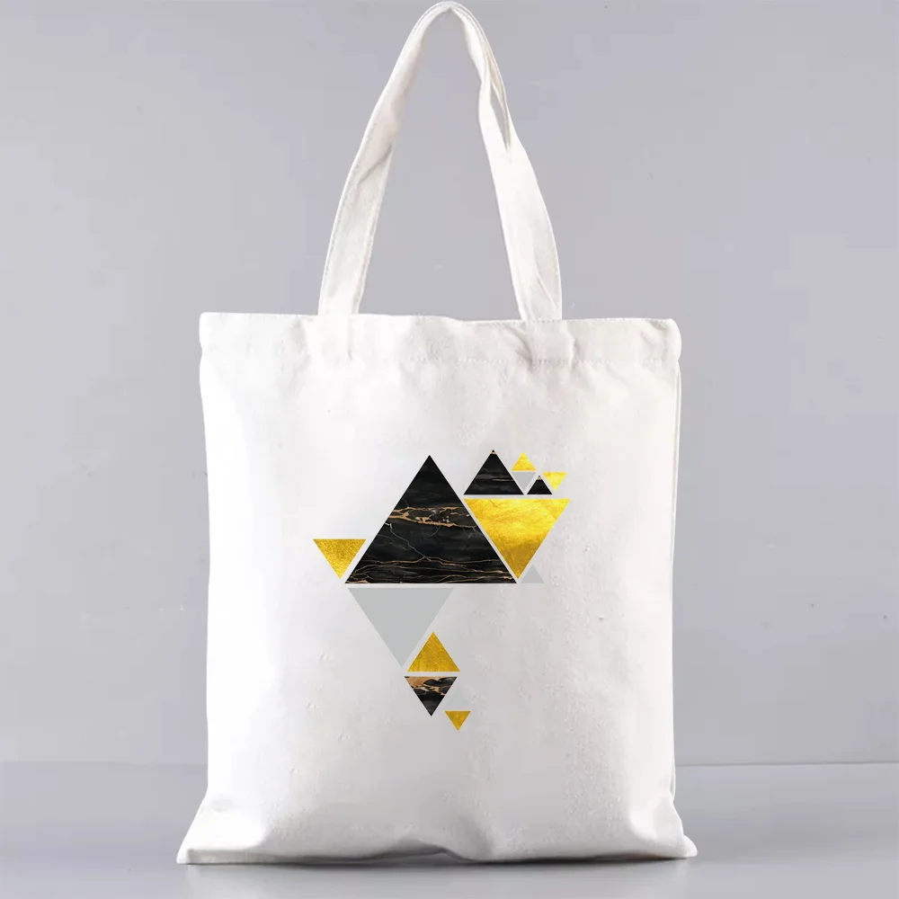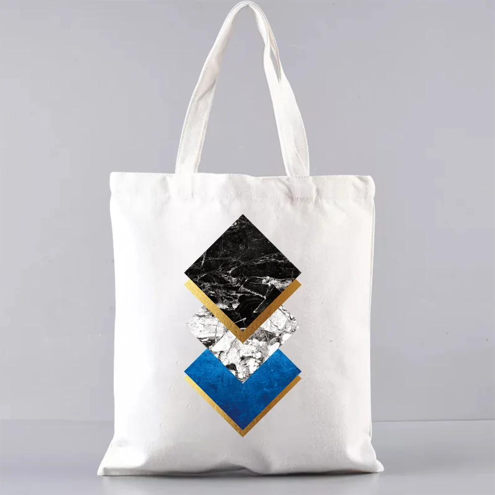 Сумка для покупок с геометрическим принтом, стильная сумочка-тоут для покупок в стиле Харадзюку, холщовая большая сумка на плечо для колледжа
