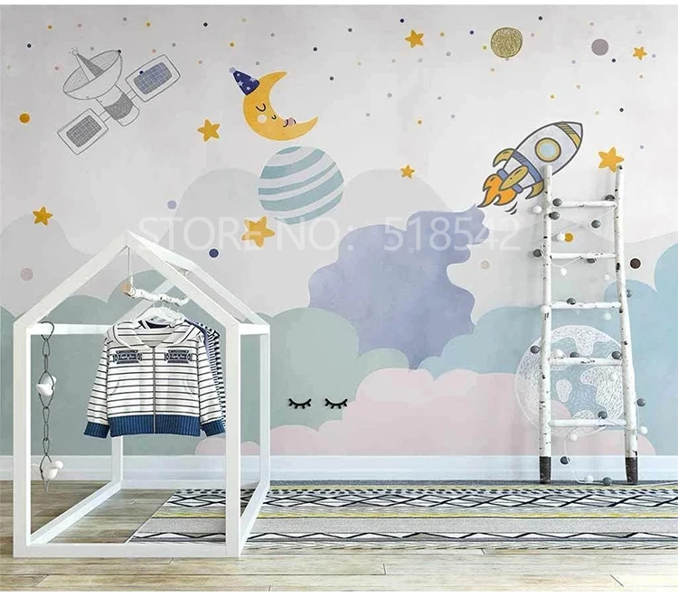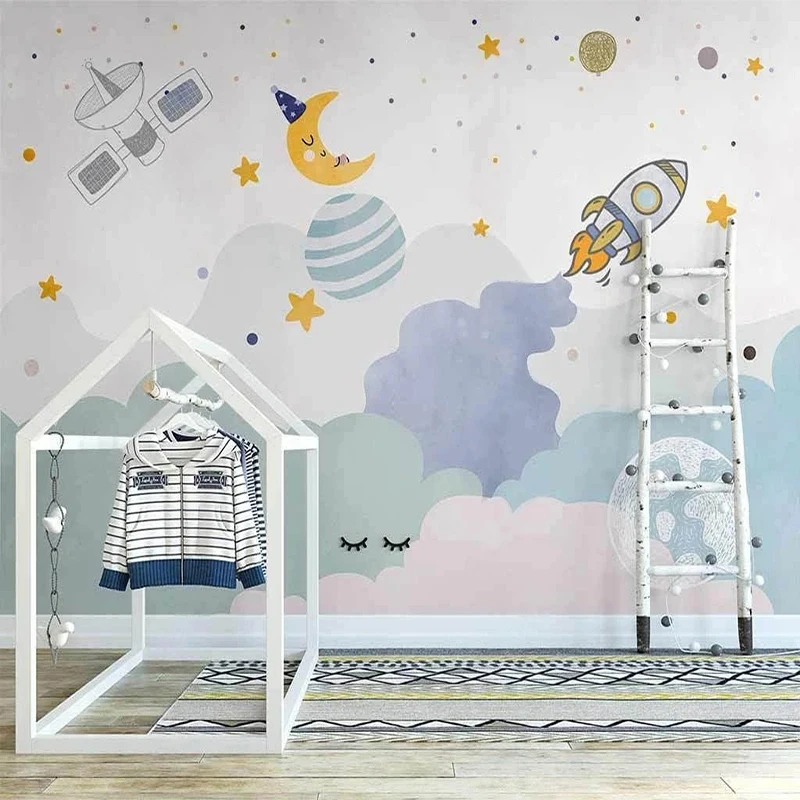 Настенная 3D Роспись на заказ, настенные Мультяшные обои с рисунком космического звездного неба, планеты для детской комнаты, спальни, домашний декор, бумажная Фреска