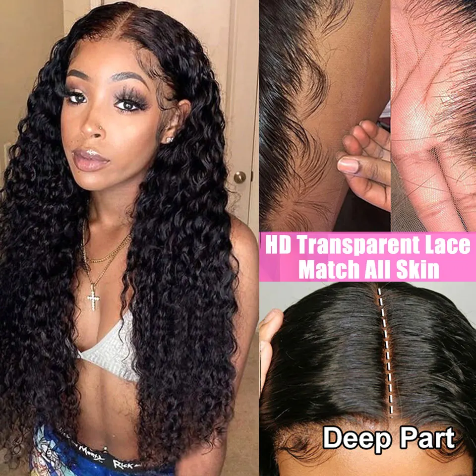 30 34 дюймов Свободные глубокие волнистые HD фронтальные парики для...