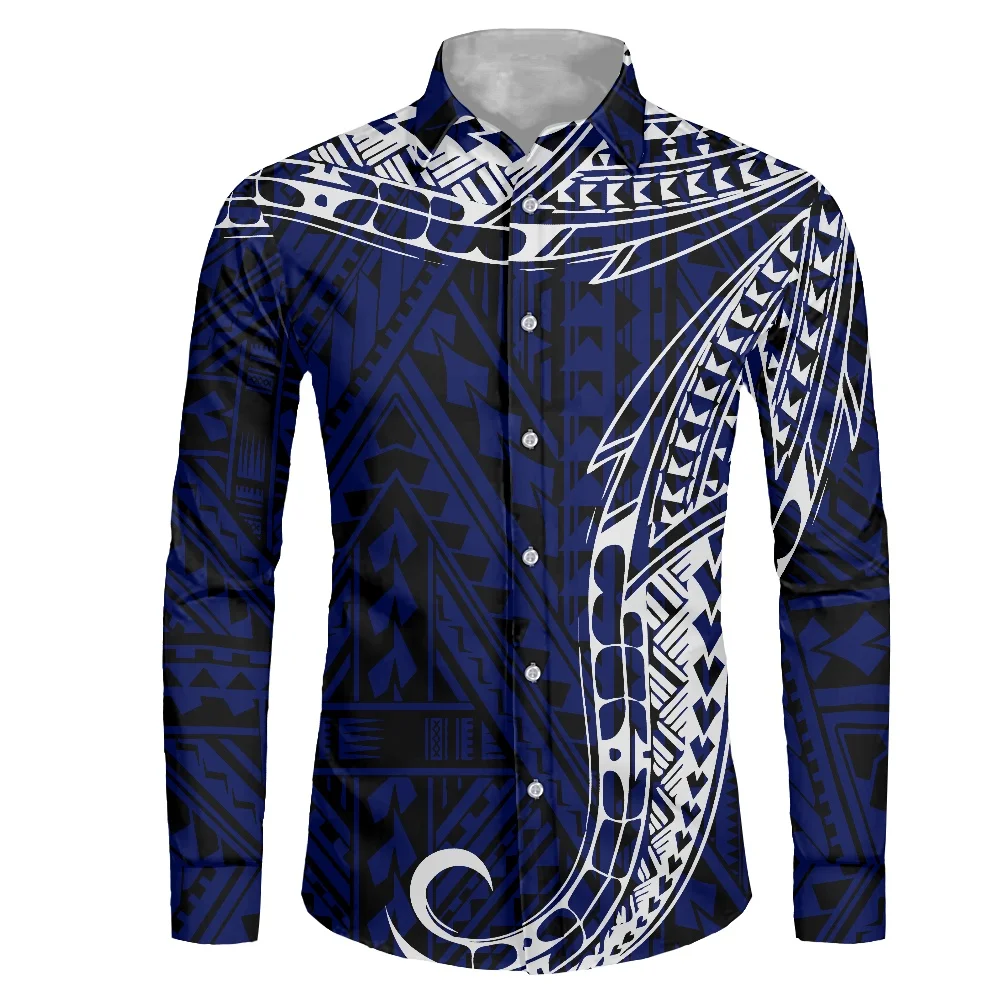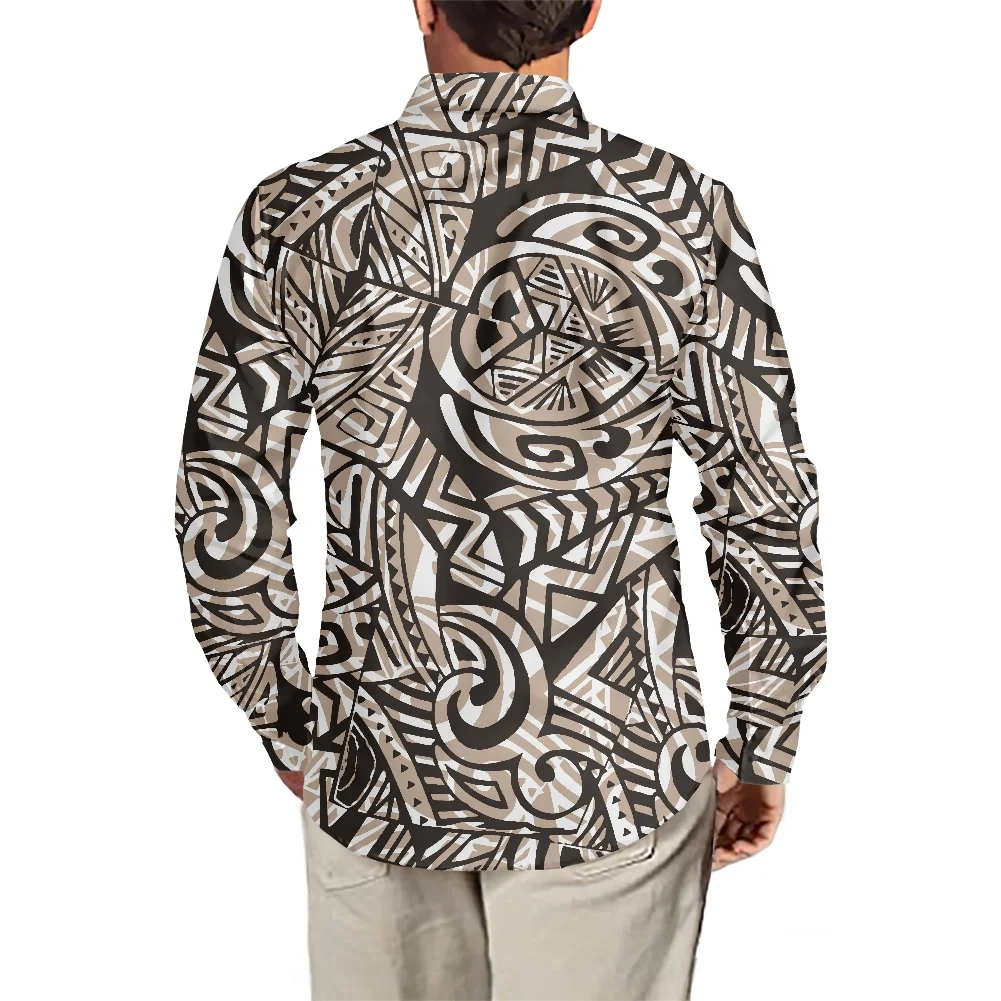 Рубашка мужская с длинным рукавом, полинезийский родовой дизайн, желтая полоска, модная уличная одежда, премиум-класса, под заказ, оптовая цена