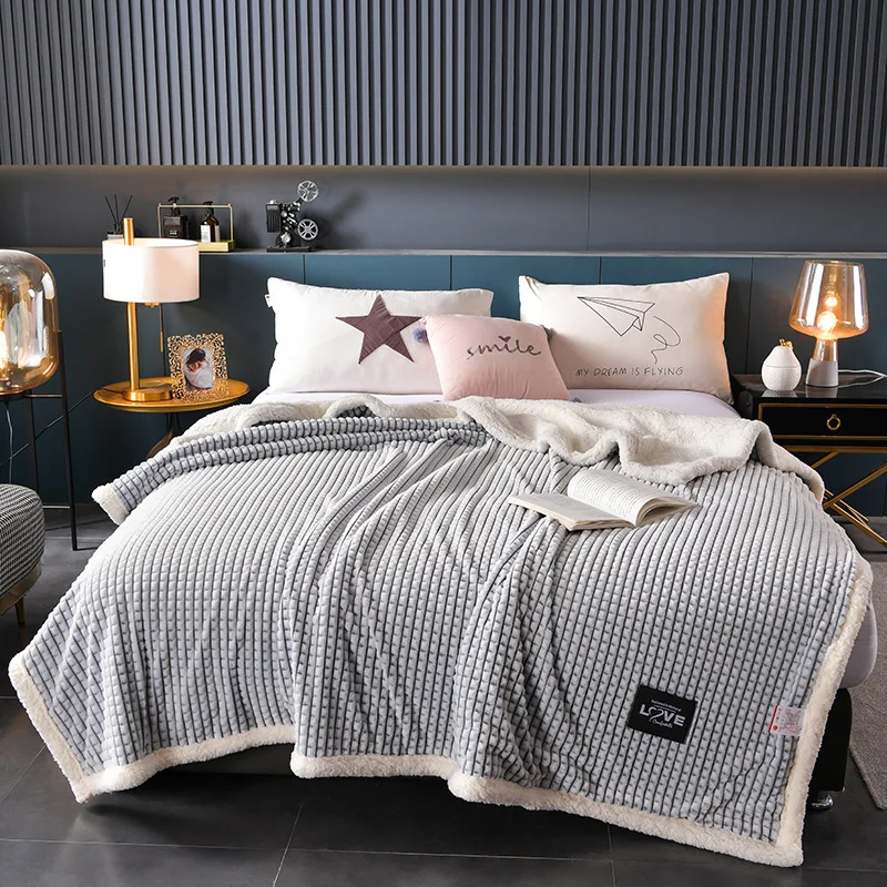 Однотонное Двухслойное одеяло из кораллового флиса, мягкий коврик для софы, теплый удобный гобелен, покрывало для дивана и кровати