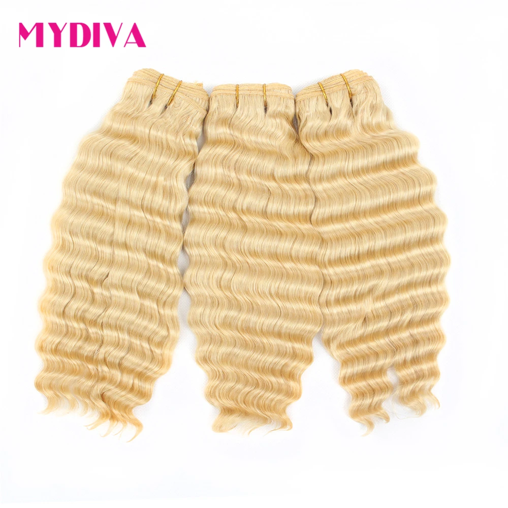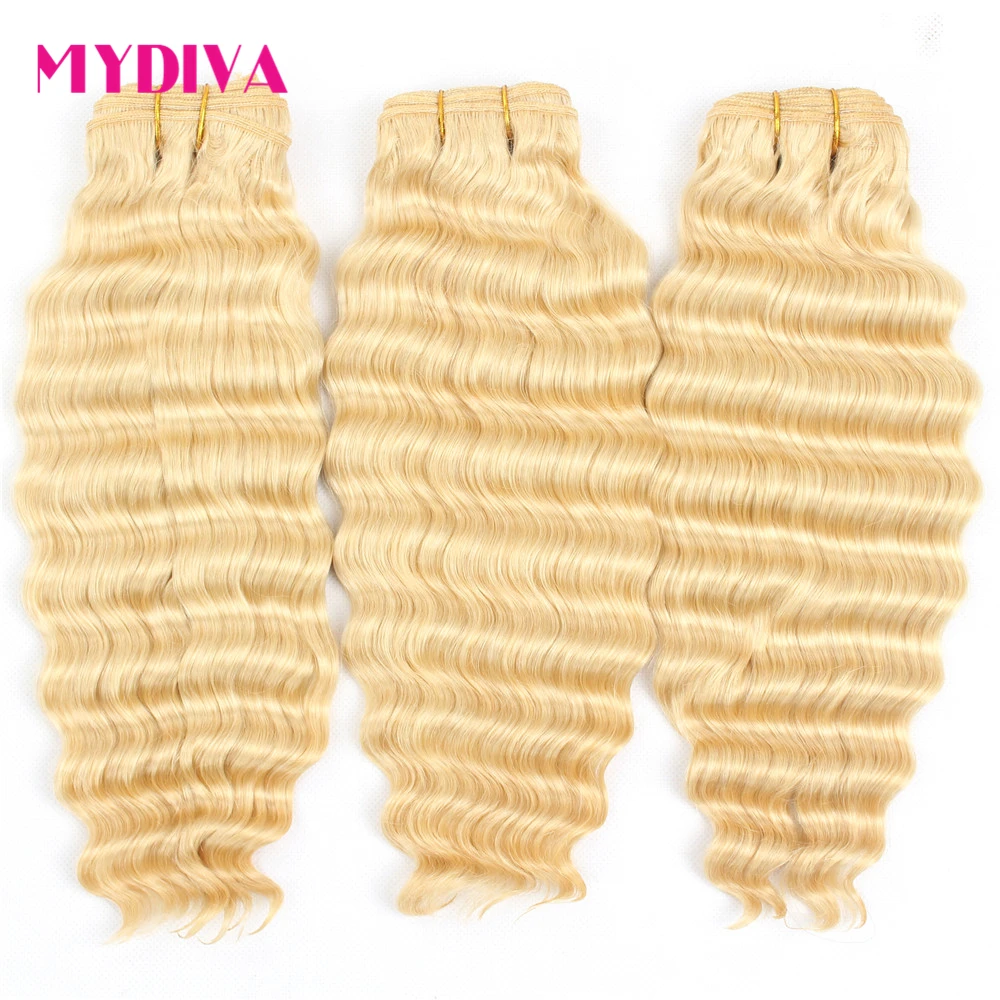 Бразильские пряди глубоких волн, человеческие волосы Remy для наращивания, блонд от 10 до 32, 38, 40 дюймов Пряди 613, 1 шт. или 3 пряди, сделка Mydiva