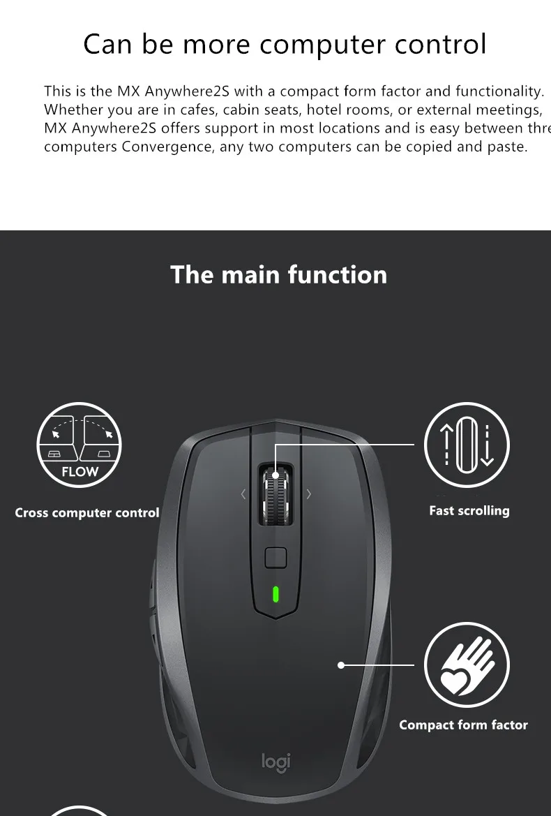 Мышь Logitech MX Master 3MX Anywhere 2S беспроводная Bluetooth мышь офисная мышь с беспроводным приемником 2,4G обновление Mx master 2s