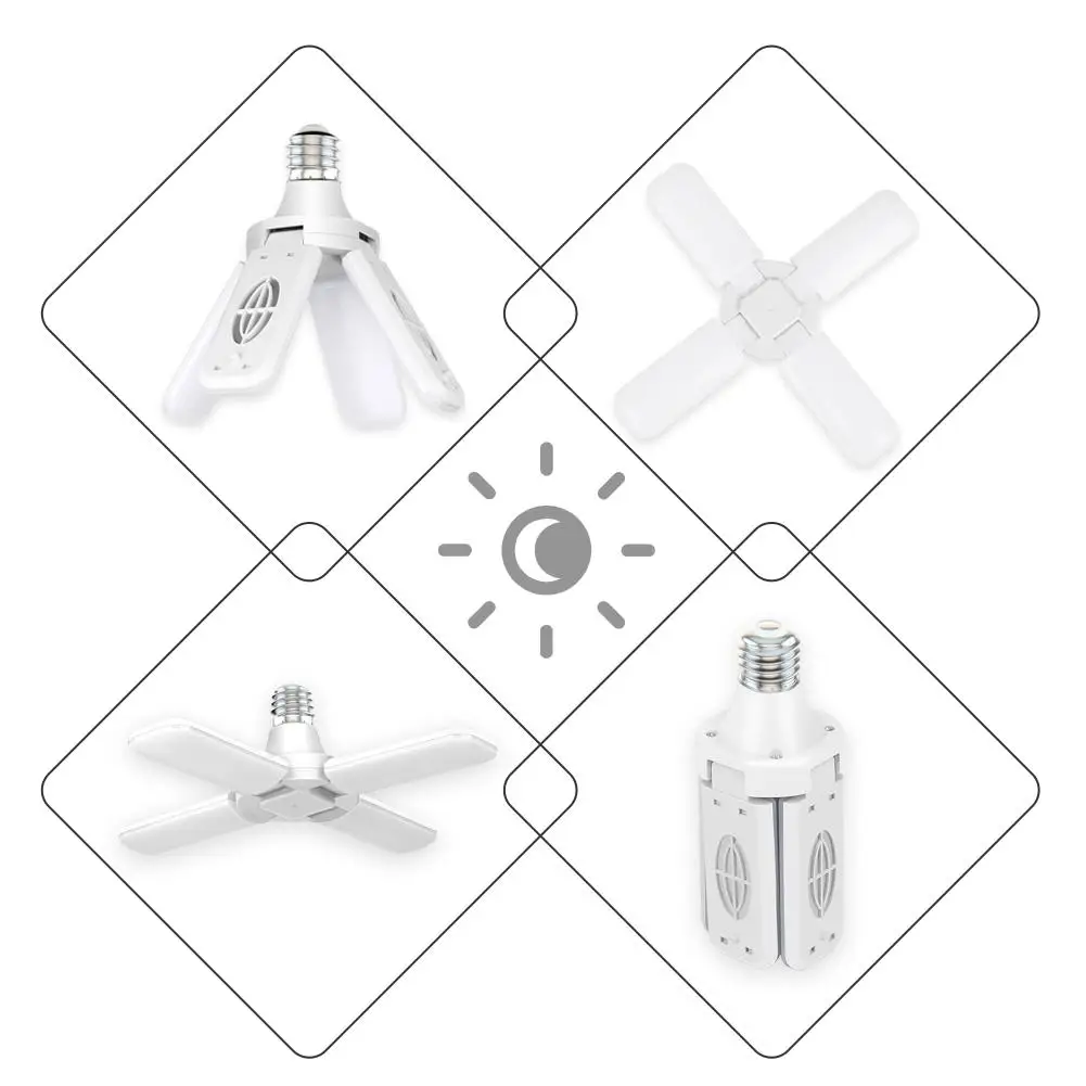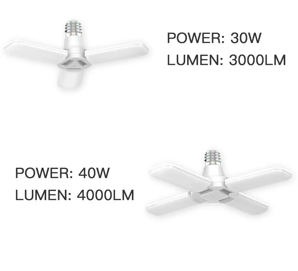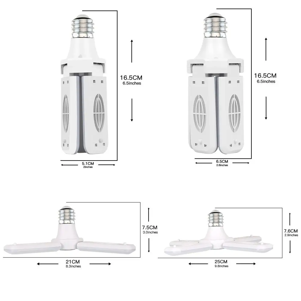 Светодиодные гаражные светильники E26, 30 Вт, 40 Вт, 34 лампочек, складные регулируемые лопасти вентилятора, деформируемая мастерская, склад, потолочный светильник