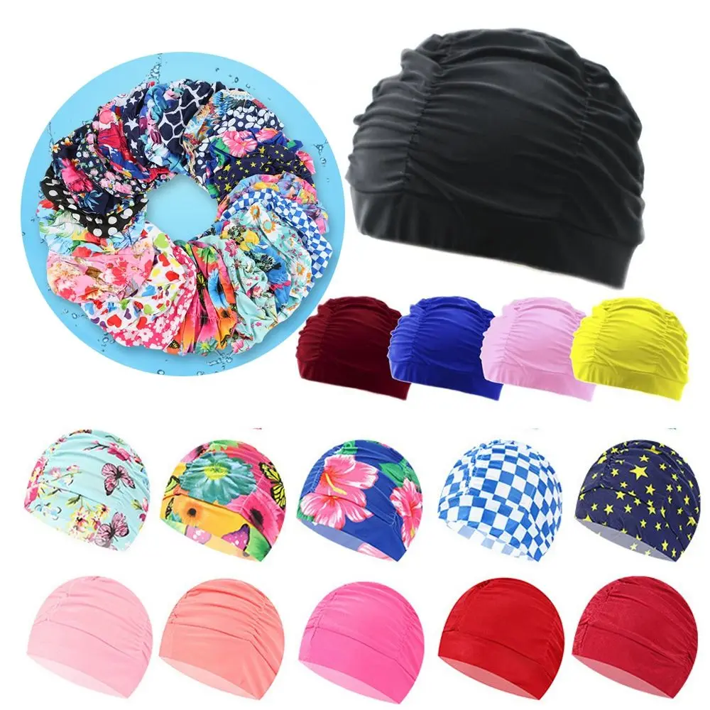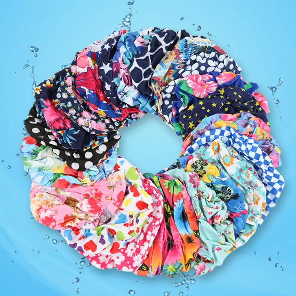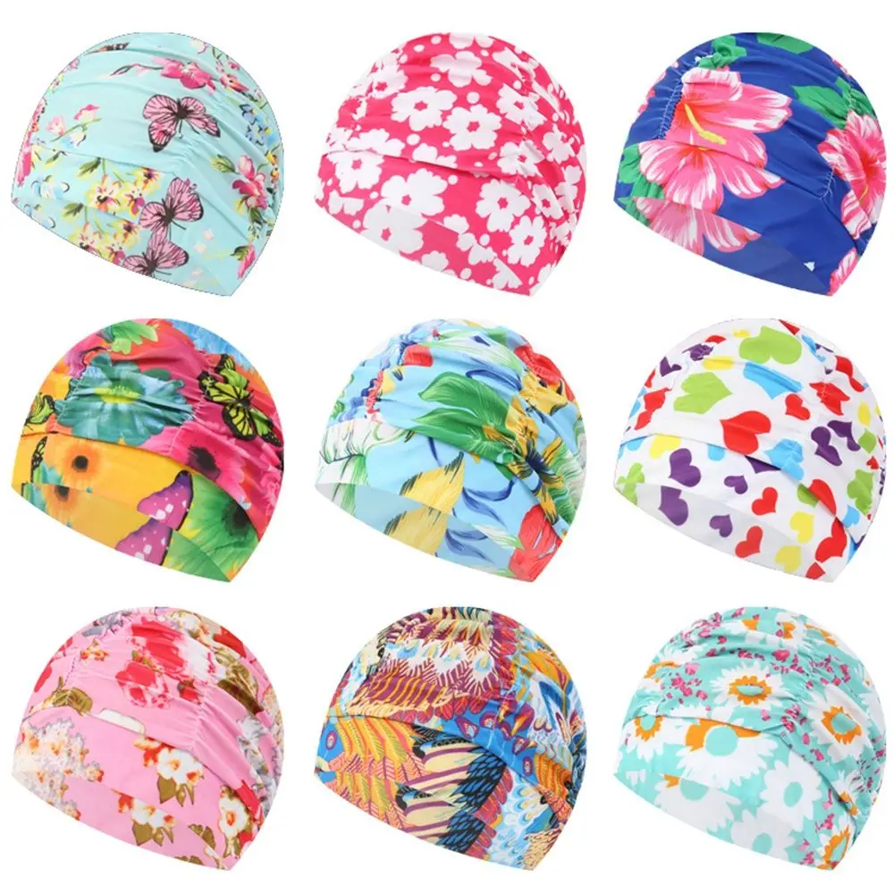 Популярные спортивные аксессуары с цветочным принтом, эластичный нейлоновый тюрбан свободного размера, шапочка для плавания, шапочки для плавания с длинными волосами для защиты бассейна