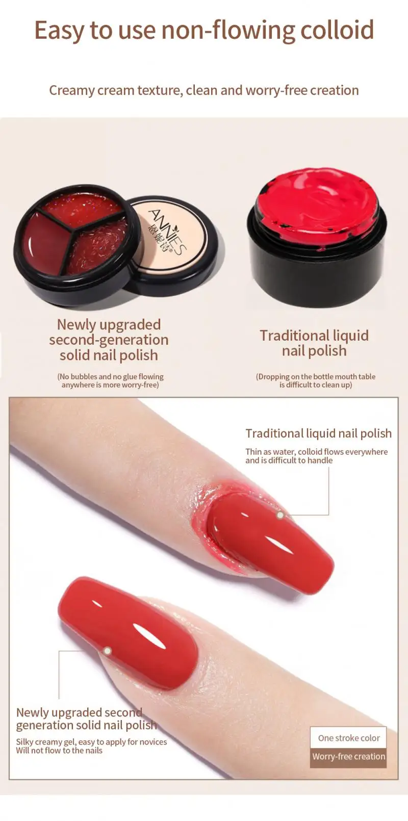 3 в 1 Твердый лак для ногтей консервированный Твердый крем стойкий чистый цвет прозрачный лак для ногтей мусс твердый гель TSLM1