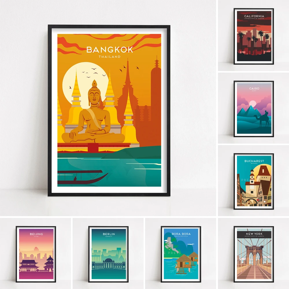 Плакат из Бангкока, печатный туристический плакат из таиланда для спальни, домашний декор