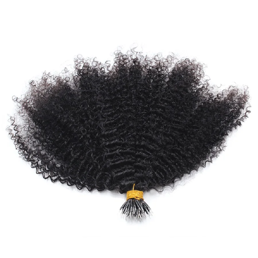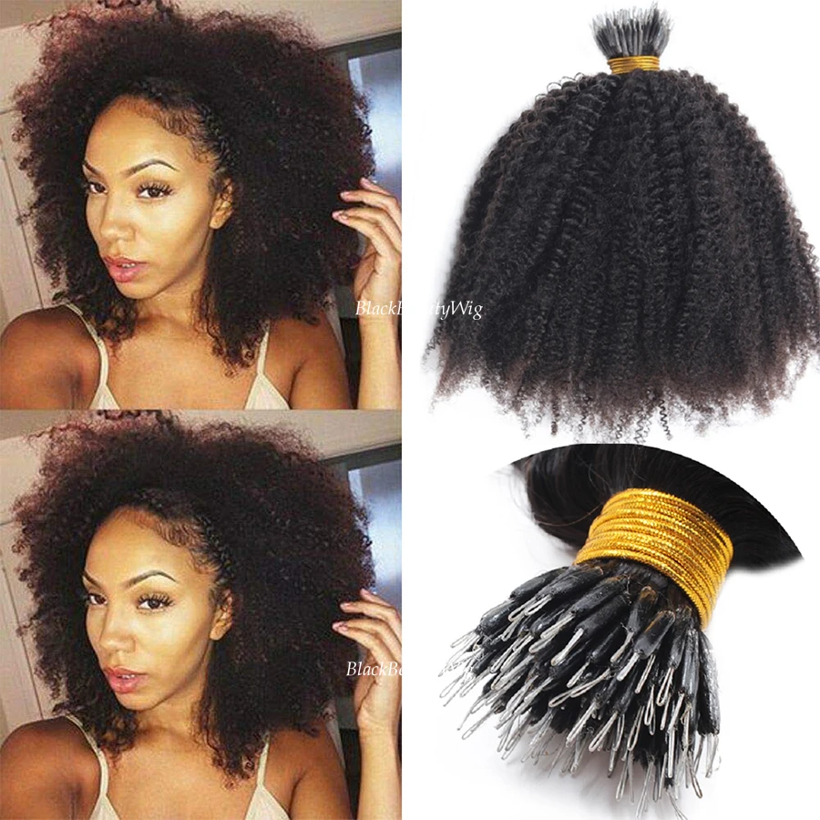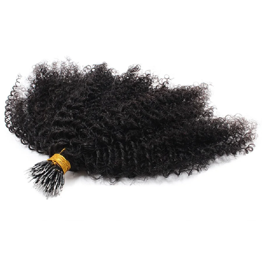 Афро кудрявые нано-кольца I-образные накладные человеческие волосы для наращивания малазийские маленькие кудрявые нано-кольца человеческие волосы Microlinks 100 г 100 прядей