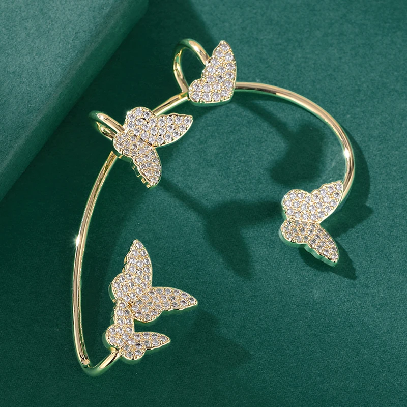 Модные циркониевые серьги-манжеты в форме бабочки для ушей в Корейс...