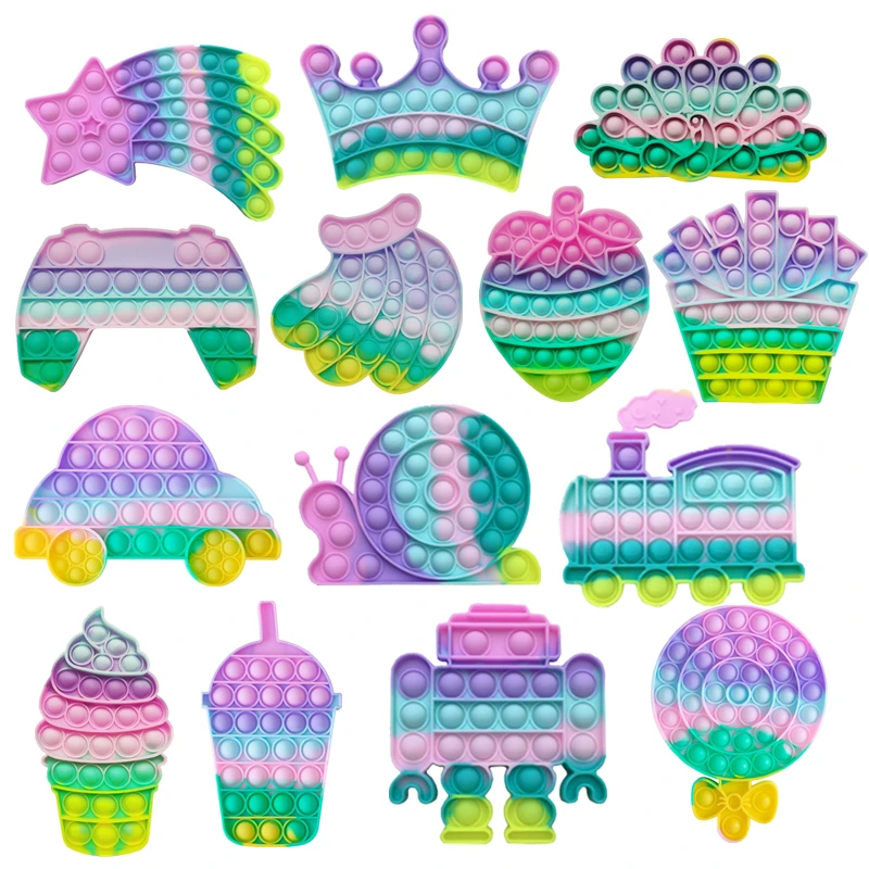 Игрушка-антистресс Rainbow Pop It, игрушки-антистресс, фрукты, животные, леденец, поезд, корона, пузырьки, игрушка-антистресс, подарочная коробка