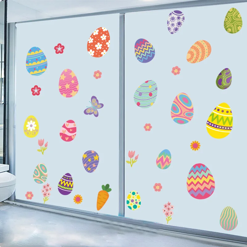 2022 пасхальные наклейки с мультяшными яйцами, наклейки на стену, наклейки на окна, зеркальные наклейки, наклейки на холодильник, домашний декор на Пасху