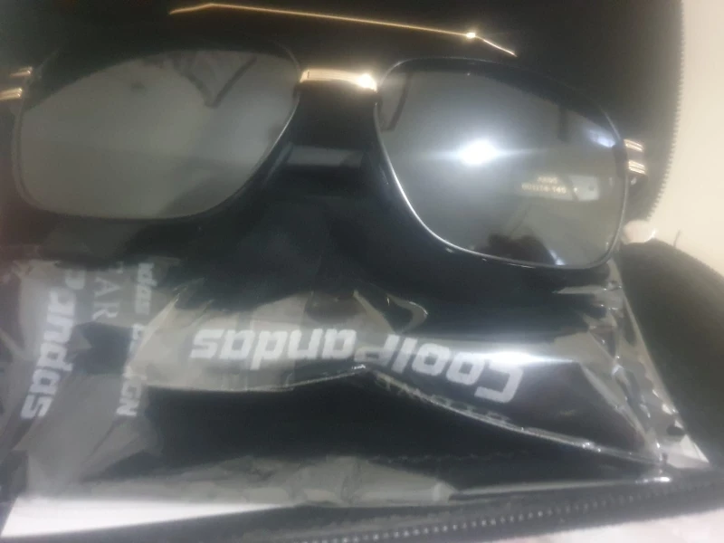 Фотохромные поляризационные очки CoolPandas A695. ✅ Доставка в глубь РФ 18 дней. ✅ Комплект: фирменный чехол, тряпочный чехол, тряпочка для протирки линз, тест для поляризации. ✅ Поляризация присутствует, фотохром тоже, только в силу отсутствия солнца не смог полноценно проверить. А вот синий цвет линзы пропускают.