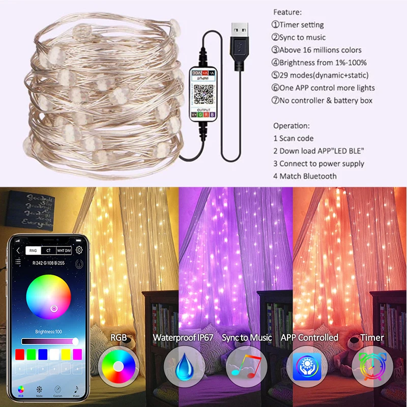 Светодиодная USB-гирлянсветильник с дистанционным управлением через приложение