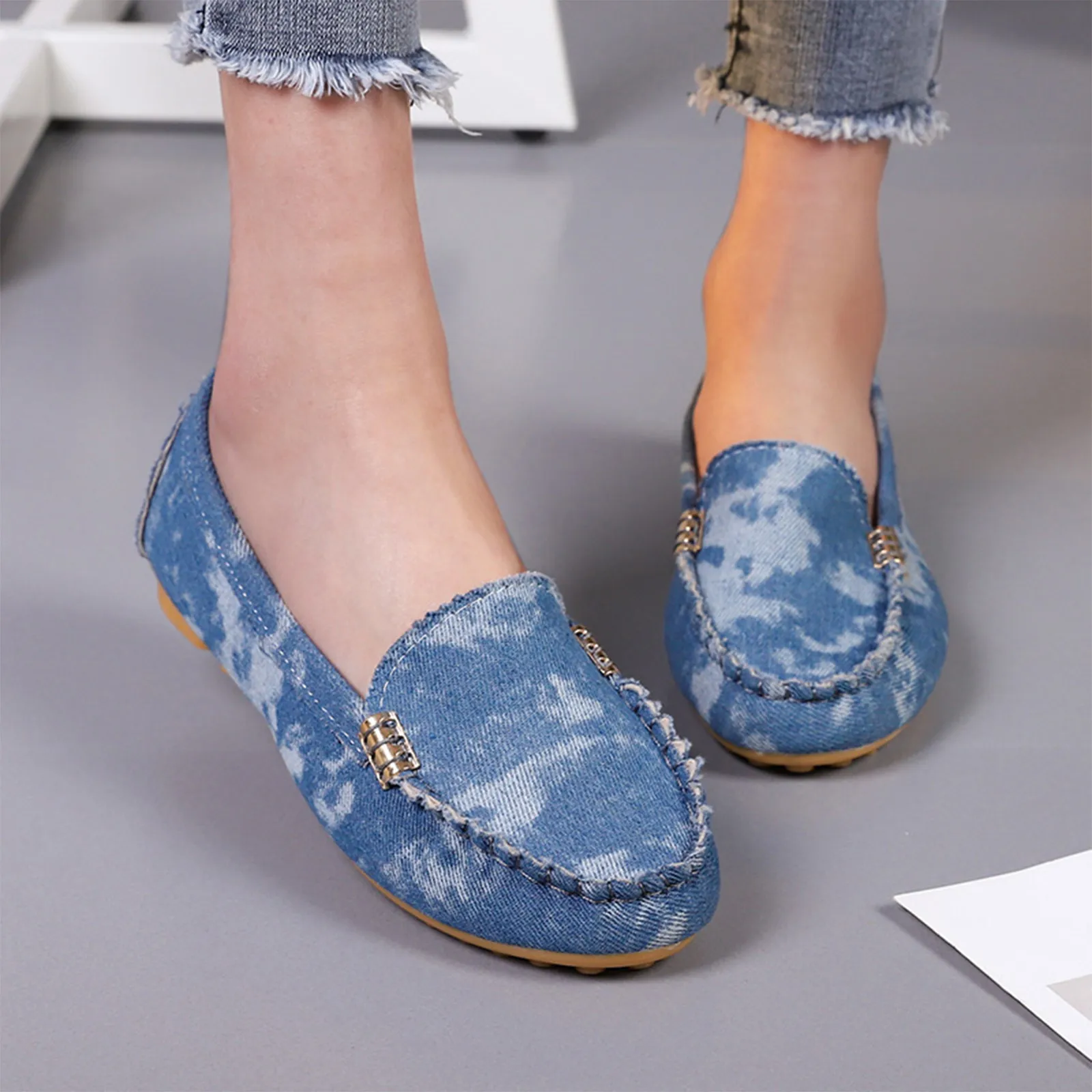 Туфли женские с круглым носком, без каблука, Нескользящие, с металлической пряжкой, летняя обувь для ходьбы