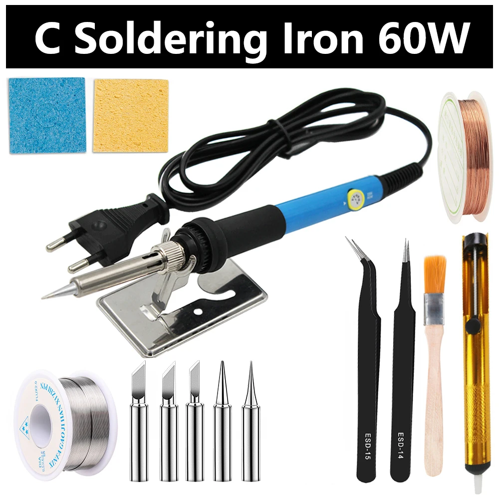 Электрический паяльник с регулятором, 60 Вт, 90 Вт, набор для регулируемой паяльной станции, инструмент для сжигания дерева, 220 В, 110 В + железный наконечник