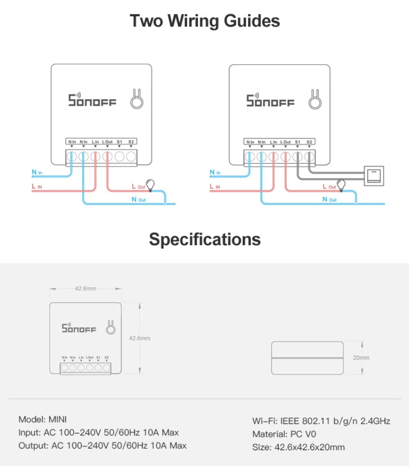 MINIR2, в качестве усиленного мини двустороннего DIY smart switch, был переработан, чтобы поднять безопасность и производительность до оптимального уровня. Старая версия MINI имеет внешнюю антенну с сильным электричеством, но антенна minir2 полностью скрыта в интерьере, что обеспечивает вам душевное спокойствие, чтобы использовать его для управления вашими устройствами. Кроме того, интерфейс S1 и S2 окрашен в серый цвет, который отличается от других интерфейсов ввода и вывода, чтобы в дальнейшем напоминать вам не подключать сильный ток к обоим интерфейсам. 2KV Испытание на перенапряжение соответствует стандарту 1KV, который требуется Сертификация CE, и он прошел сертификацию ANATEL, поэтому MINIR2 дает вам достаточно безопасности, чтобы обеспечить вам безопасное использование. Маленький и компактный смарт-переключатель используется для различных видов коробок переключения, даже самый маленький Стандартный Переключатель ЕС. Удобно автоматизировать бытовую технику в приложении eWeLink с помощью смартфона или голосовой команды. Поддержка 3 режимов запуска импульсного режима (работает с кнопочными переключателями), edge mode (работает с переключатели SPDT) И следующий режим (работает с переключателями с отметкой «ON» и «OFF» и датчиками с выходом сухого контакта). Он поддерживает режим «сделай сам» (предназначен для разработчиков), который позволяет пользователям интегрировать MINIR2 в третьи по всему миру вечерние системы управления с открытым исходным кодом для достижения контроля локальной сети без облачного сервиса, такие как домашний помощник, openHAB, ioBroker. И т. Д. Для документа протокола и кода для инструмента «сделай сам» (обновление)