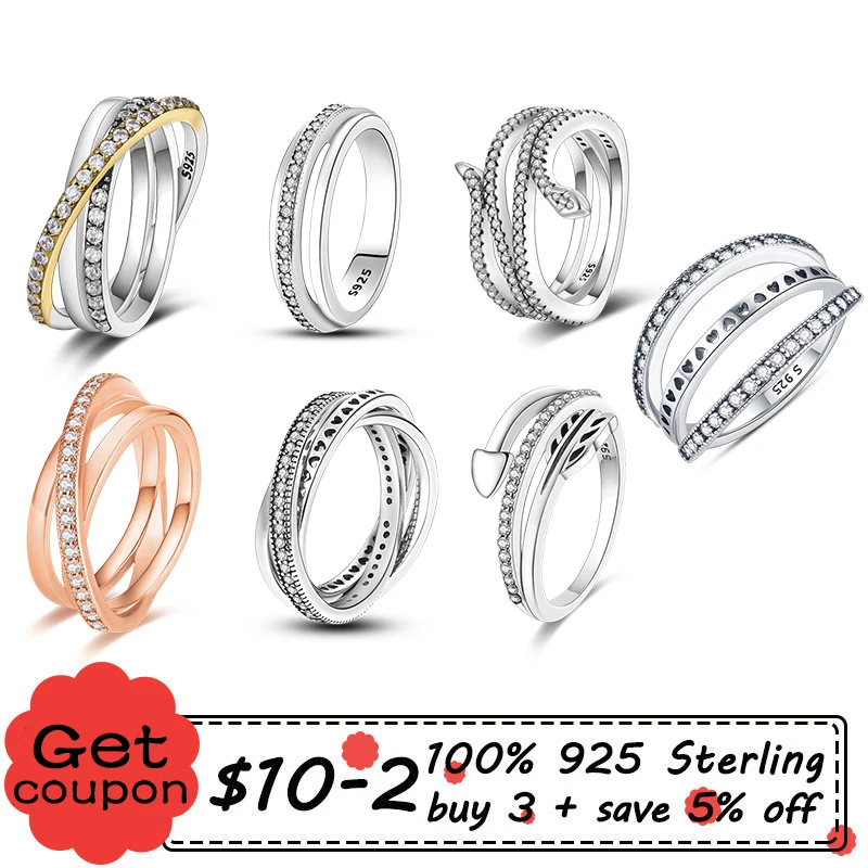 Обручальные кольца из стерлингового серебра 925 пробы с тройным сос...