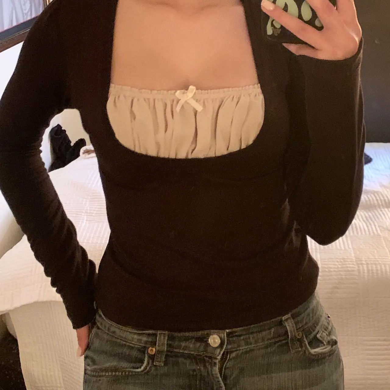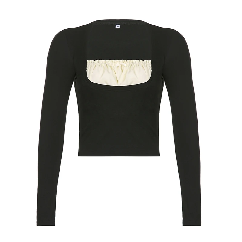 Милый укороченный топ y2k Kawaii с кружевной оборкой бантом длинными рукавами футболки пуловеры Harajuku Fairycore Grunge Ретро корейские футболки для женщин