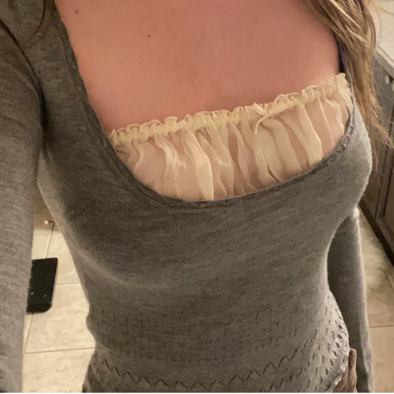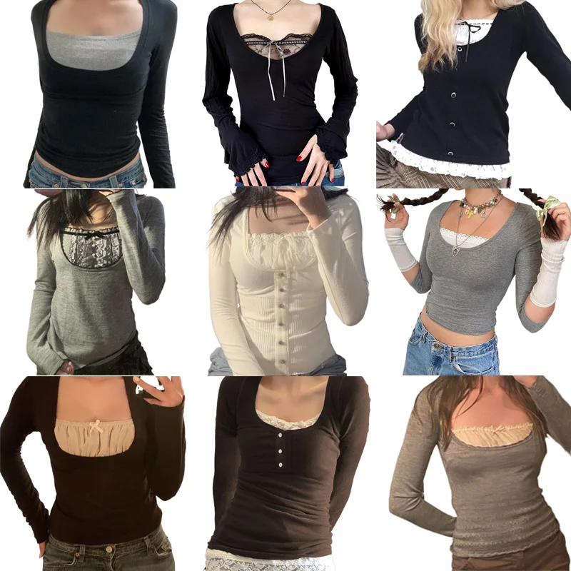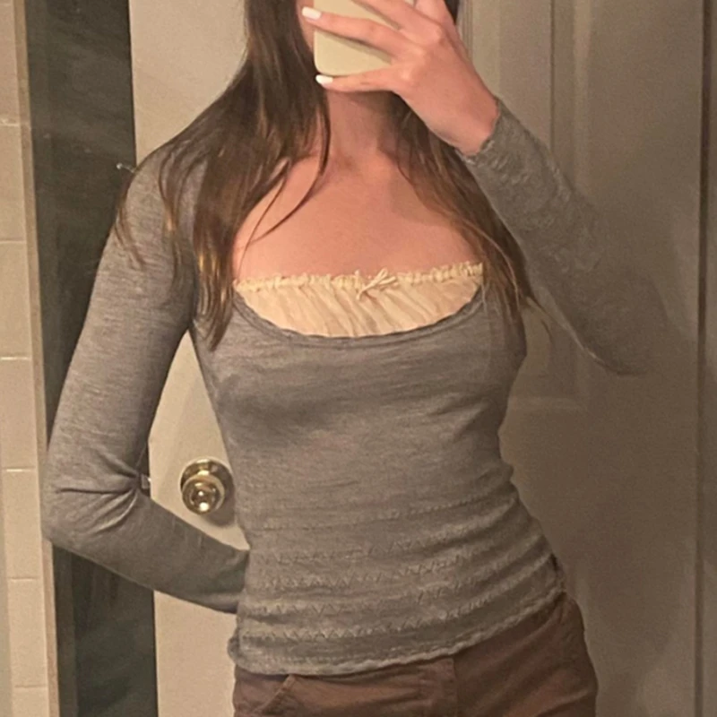 Винтажные кружевные вязаные свитера Y2K в стиле пэчворк, Осенние гр...