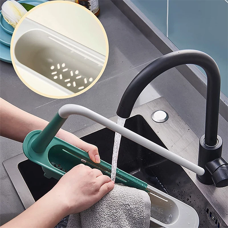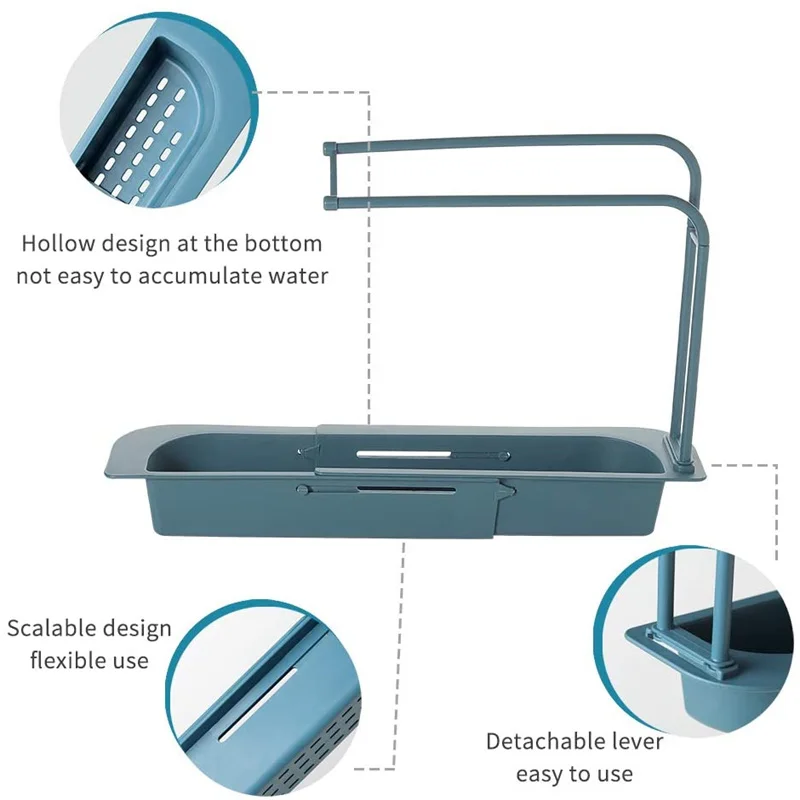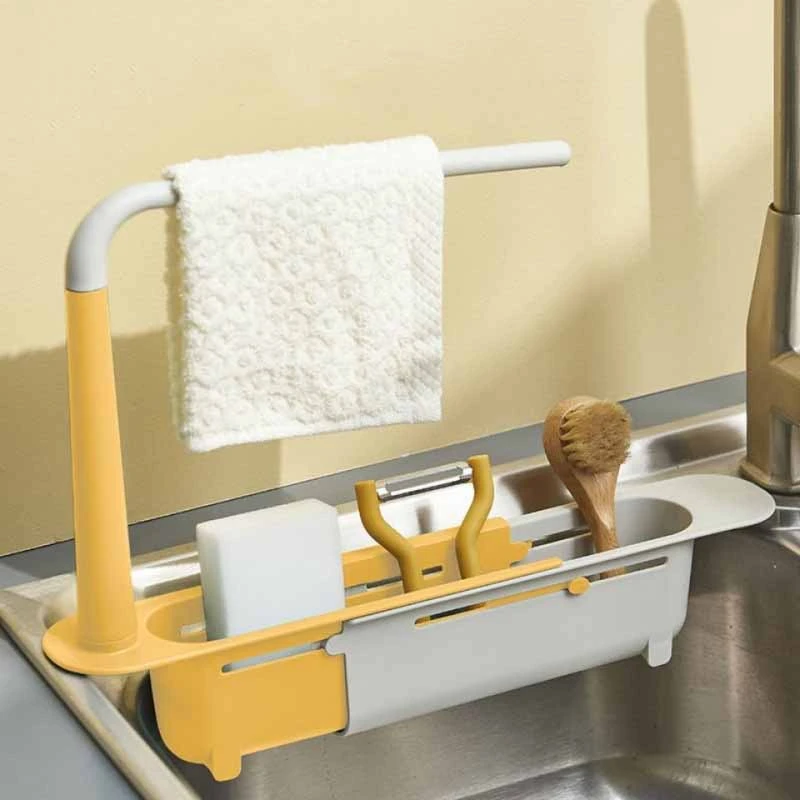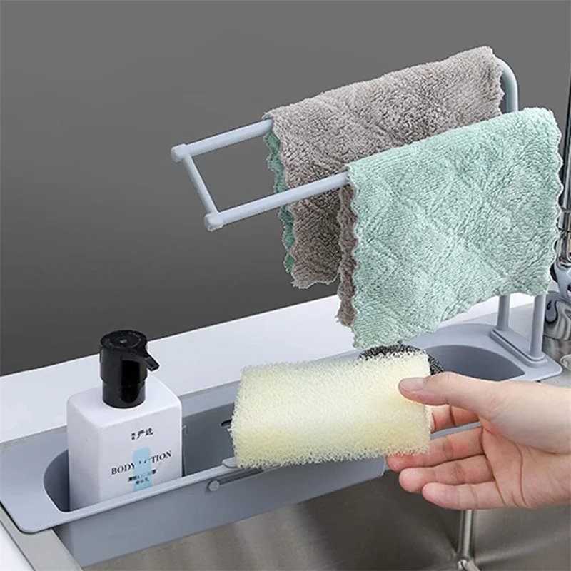 Многофункциональная: 2 в 1 телескопическая стойка для хранения губок, с 2 полотенцами, удобная для хранения чистящих принадлежностей, корзина для слива на соответствующей высоте, удобная для ежедневной уборки