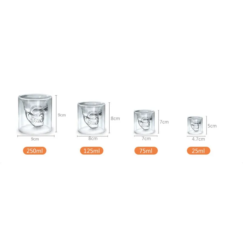 Креативный стеклянный стакан с двойными стенками в виде черепа, устойчивый стакан для чая, пива, молока, красного вина, бара, домашней вечеринки, посуда для напитков, кофейные чашки, кружка, 25 мл-250 мл