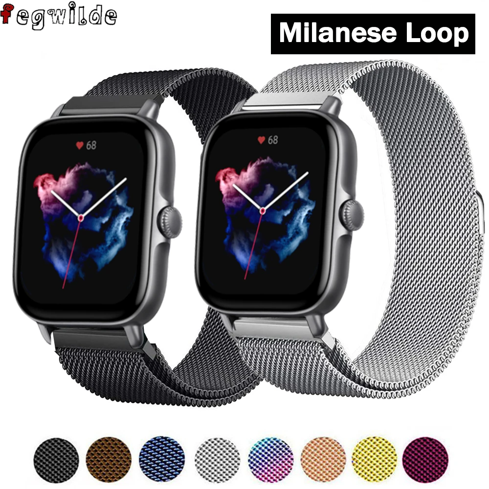 Магнитный ремешок для Amazfit GTS22e3GTS2 MiniGTR 42 мм47 ммGTR23Pro stratos, металлический браслет для часов Amazfit ремешок bip